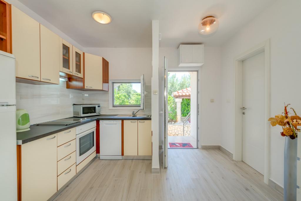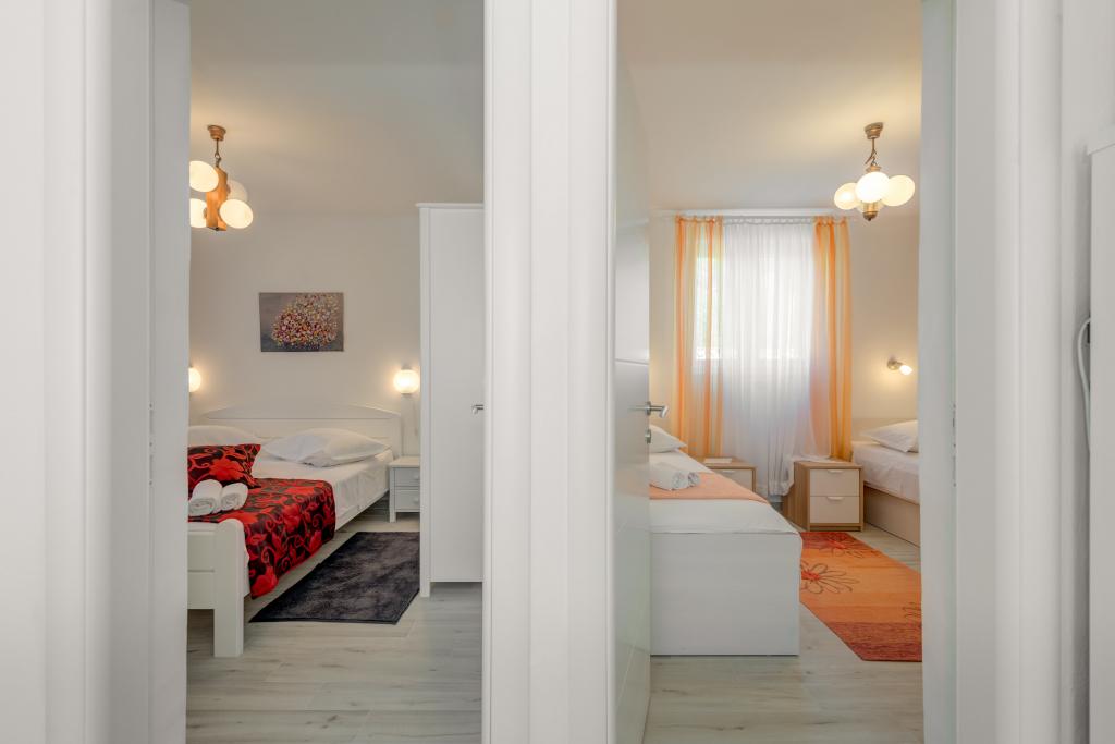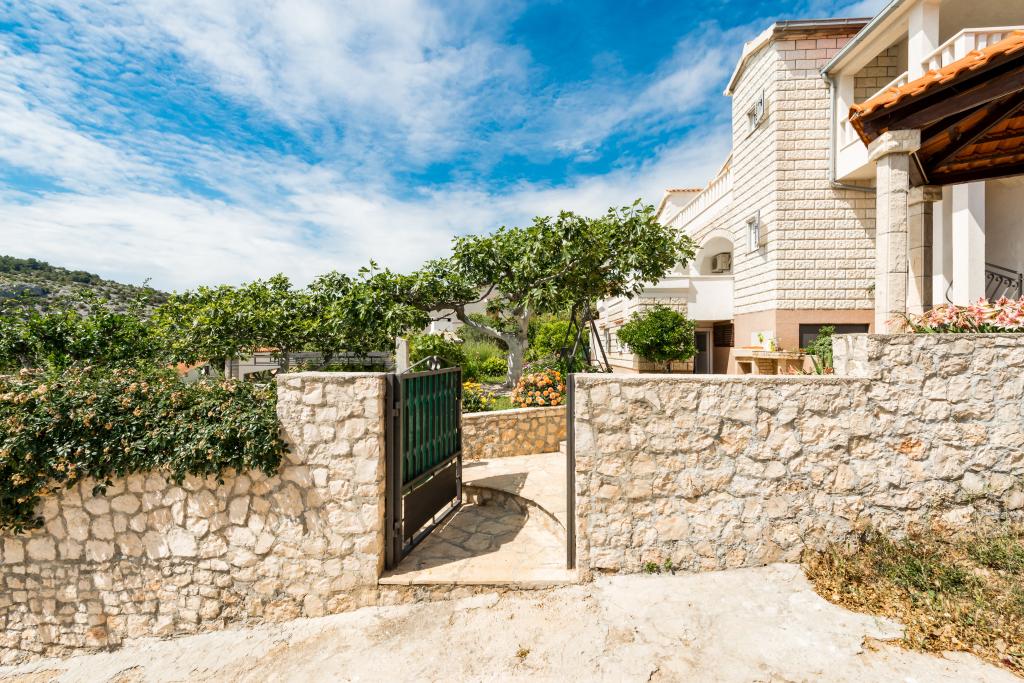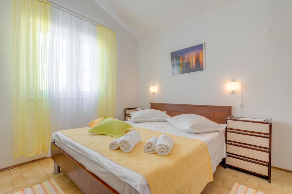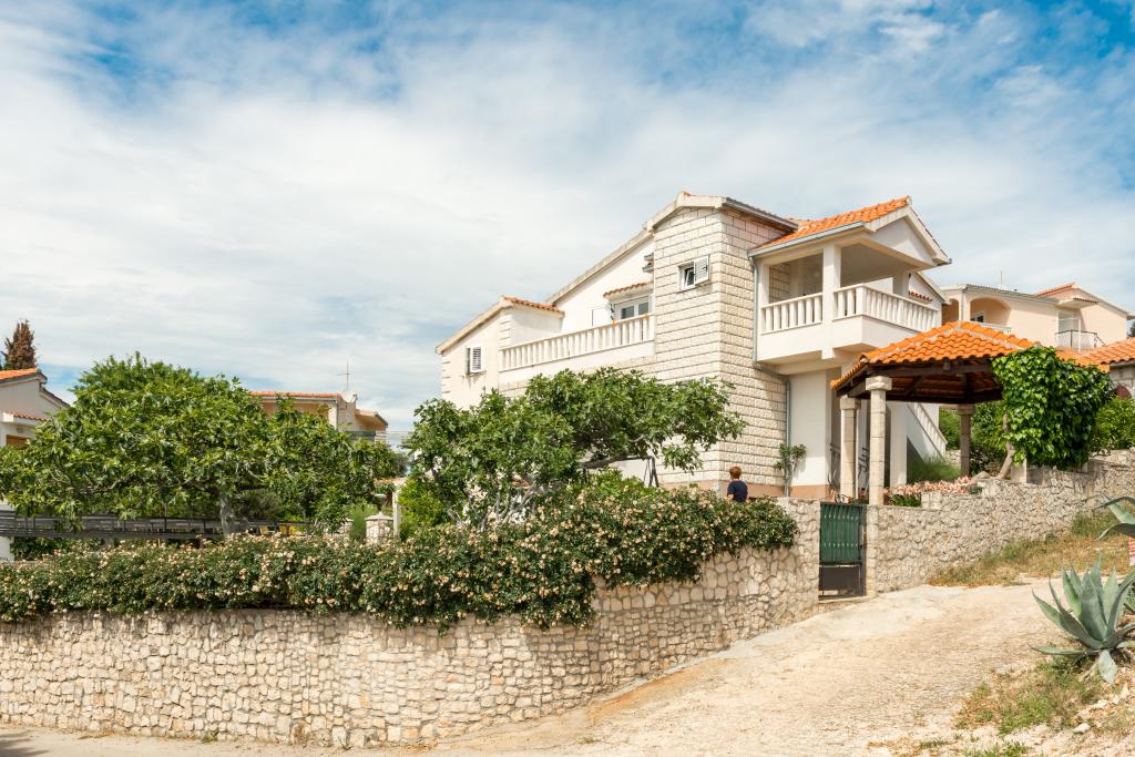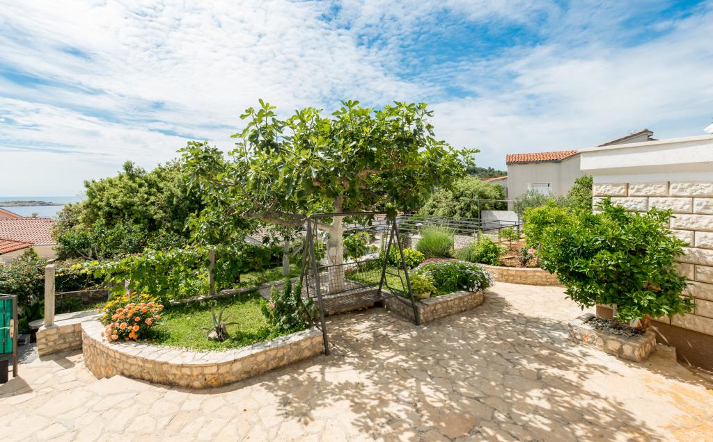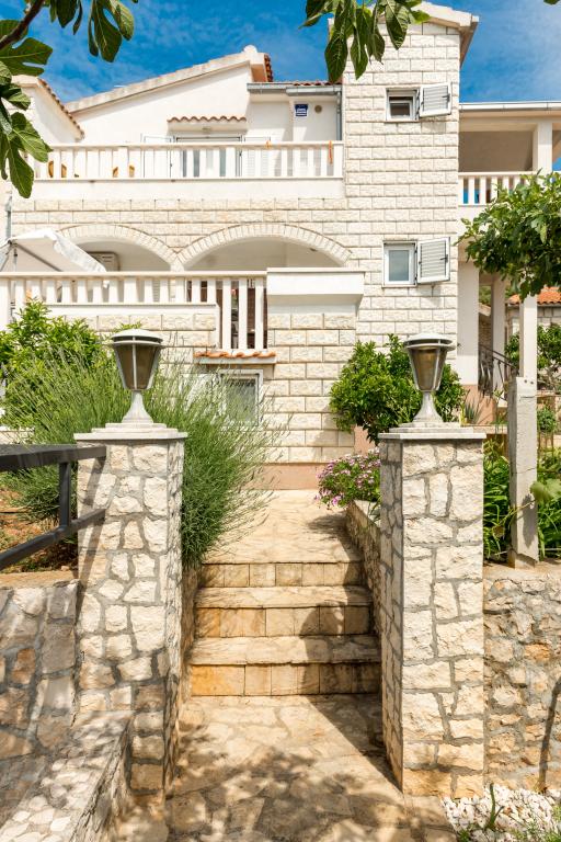 Prekrasna kuća na mirnom mjestu svega 70 metara udaljena od mora. Svega 2 apartmana u objektu omogučiti će intimnu i mrinu atmosferu idealnu za odmor. Apartmani su prostrani s dvije sobe, kuhinjom, dnevnim boravkom, toaletom te prostranim balkonima. Na raspolaganju je okućnica sa sjenicom, rustikalnom grill kućicom, osiguranim parking mjestom. Vrt je prepun zelanila idealnim za odmor u toplim ljetnim danima.