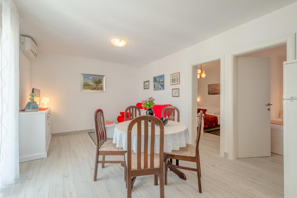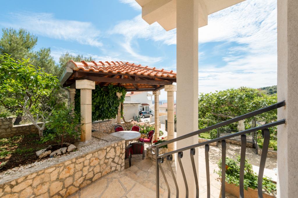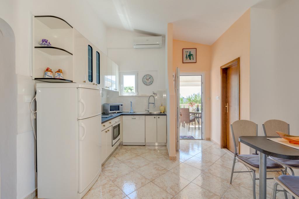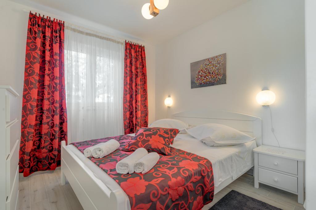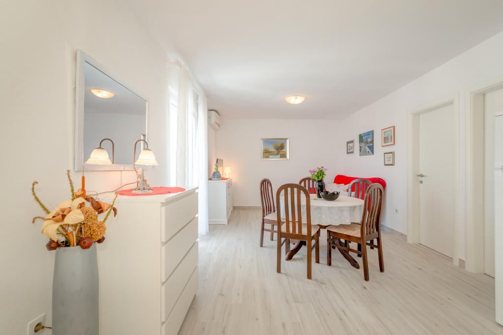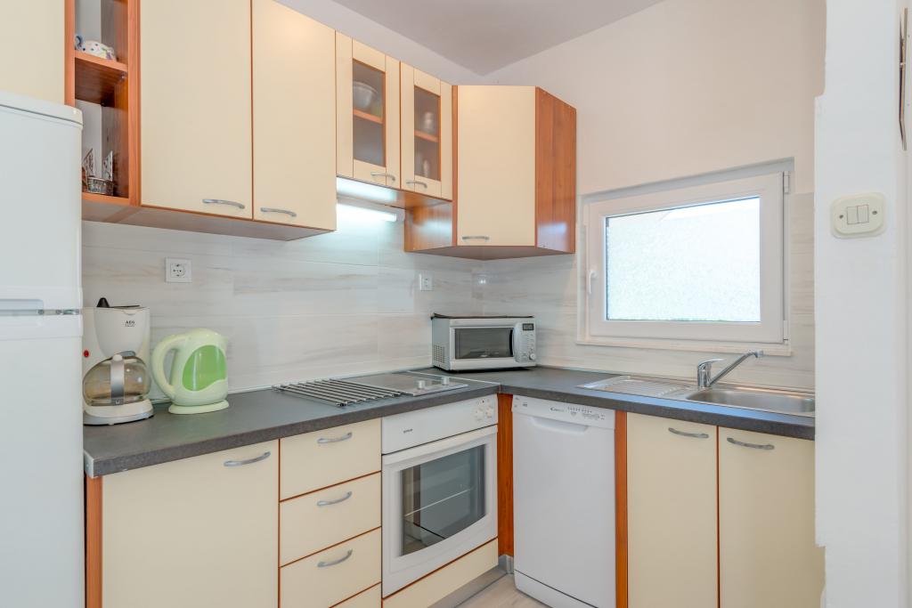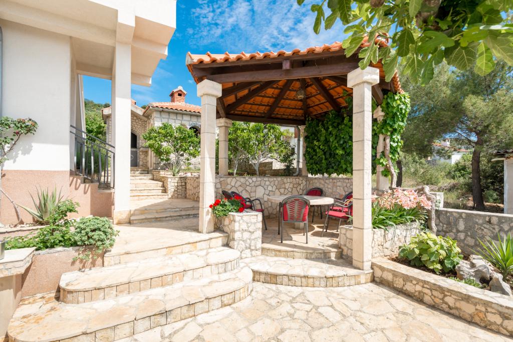 Prekrasna kuća na mirnom mjestu svega 70 metara udaljena od mora. Svega 2 apartmana u objektu omogučiti će intimnu i mrinu atmosferu idealnu za odmor. Apartmani su prostrani s dvije sobe, kuhinjom, dnevnim boravkom, toaletom te prostranim balkonima. Na raspolaganju je okućnica sa sjenicom, rustikalnom grill kućicom, osiguranim parking mjestom. Vrt je prepun zelanila idealnim za odmor u toplim ljetnim danima.