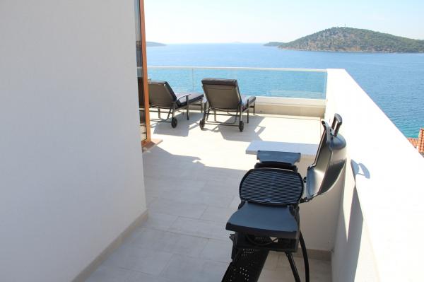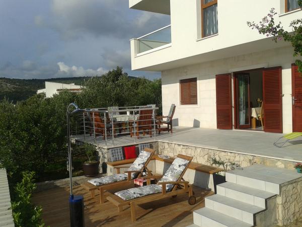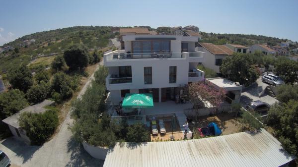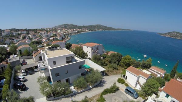Novoopremljeni apartmani Jelena se nalaze u uvali Ljoljinica, pored mjesta Ražanj, na udaljenosti 7 km od Rogoznice i marine Frapa te 15 km od noćnog kluba Aurora -Primošten. Idealno mjesto za miran odmor, uz čisto more, s pogledom na romantične zalaske sunca. Smješteni su 50 m od mora. Najbliža trgovina i restoran su udaljeni 200 m. Uz apartmane je osigurano parking mjesto. Moguće je posjetiti u krugu od 50 km nacionalne parkove Kornati, Krka i Velebit te gradove Split, Trogir, Primošten, Šibenik i Zadar. Novi luksuzno uređeni apartmani sadže perilicu za robu, perilicu za suđe, kuhalo za vodu, pećnicu, fen za kosu.