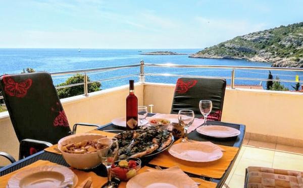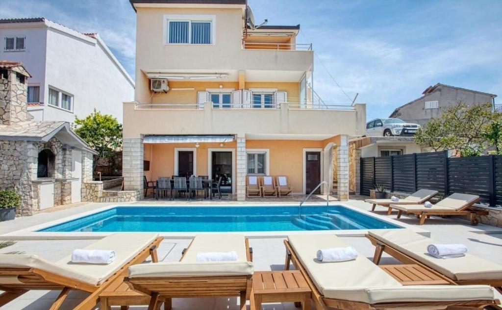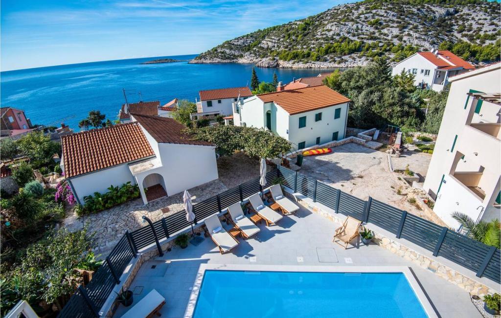 Uživajte u novouređenoj kući za odmor sa grijanim bazenom i predivnim pogledom na more samo 73 metra od plaže. Kuća se sastoji od 3 jedinice sa ukupno 5 soba za spavanje, 3 kupatila,te 3 kuhinje. Privatni zatvoreni parking, klima, grill i internet su uračunati u cijenu. Mogućnost veza za brod. Dobrodošli