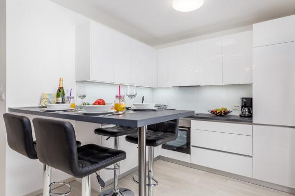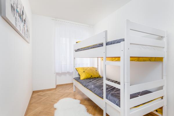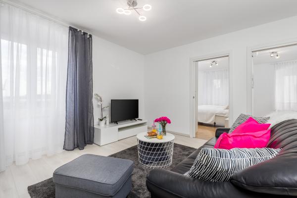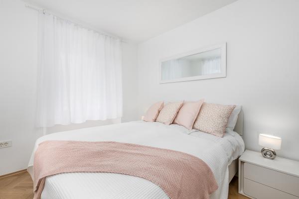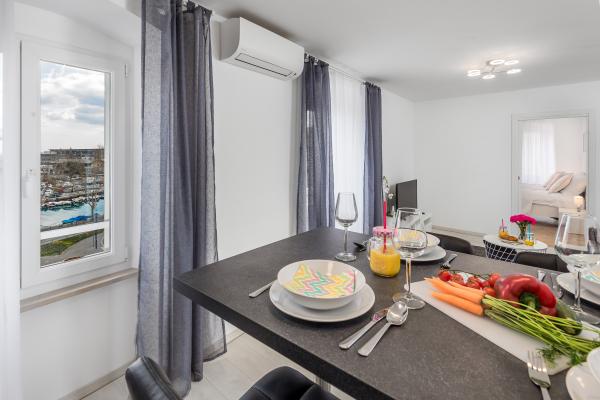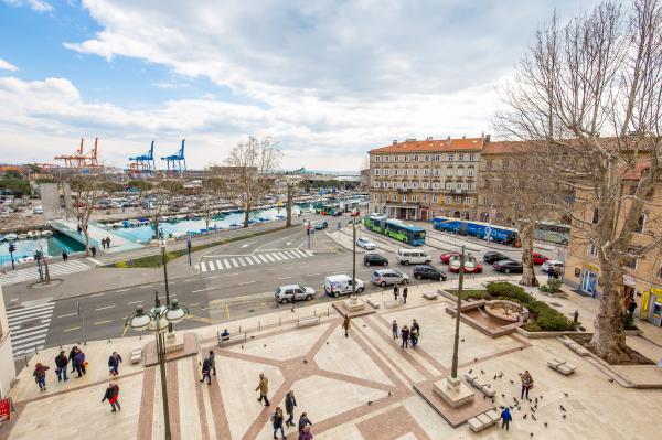 Apartman se nalazi doslovno na glavnoj riječkoj šetnici - Korzu. Apartman je moderno i novo uređen. Imamo 2 sobe. U prvoj sobi nalazi se bračni krevet (200160), a u drugoj sobi su dva single kreveta (20090). Dnevni boravak i obje sobe su opremljene klima uređajima. Kuhinja je opremljena svim potrebnim uređajima: hladnjakom, perilicom posuđa, keramičkom pločom, aparatom za kavu, kuhalom za vodu, pećnicom i toasterom. S obzirom da se apartman nalazi u samom centru grada, u blizini su svi važni sadržaji i znamenitosti udaljeni tek minutu do dvije hoda; marketi, katedrala, kazalište, restorani i barovi, shopping centri i ostale atrakcije. Najbliža plaža nalazi se na udaljenosti od 400 metara i potrebno je 10 minuta hoda. U blizini apartmana nalaze se tri velika parkinga koja se plaćaju, a najpovoljnije je parkiralište \Brajdica\ - udaljeno 300 metara od apartmana, cijena jednodnevne karte je 2, 70 €