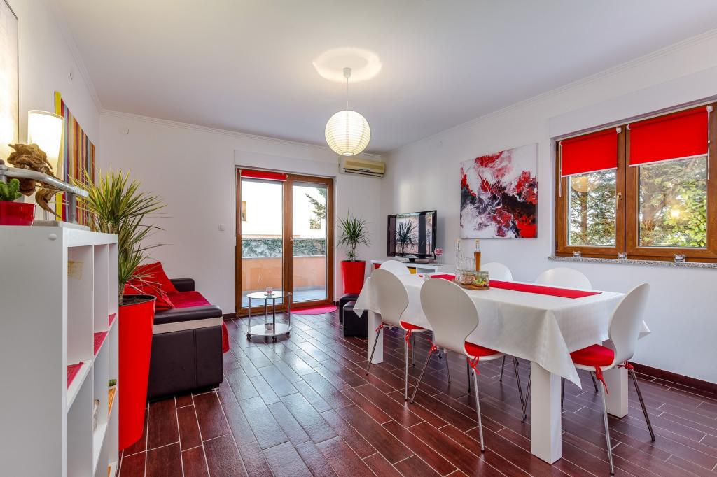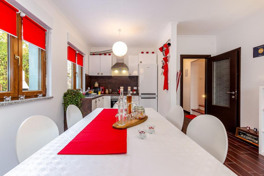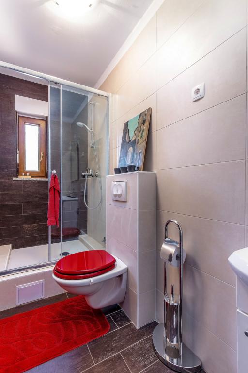 The apartment is equipped with everything You might need for Your pleasurable vacation. There is a living room with a flat screen cable TV set, PS2 with games, a dining room and a kitchen equipped with new and modern appliances, pots, dishes and cutlery if You wish to prepare Your own meals. There’s also a bathroom with a spacious shower cabin and a pantry with a washing machine. If You wish to enjoy the fresh air of the forest nearby, all You have to do is step outside on the balcony and relax Your mind and body on the garden furniture or in the yard with a barbecue set. On the first floor there is a master bedroom with queen size bed, a closet and a private balcony with garden furniture. There is also a bedroom with a full bed and yet another bathroom with a shower cabin. The apartment Wi fi Internet usage, air conditioning of both floors, floor heating and private parking are all included in the price of Your stay.