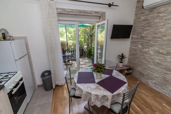 Novo uređeni apartman se nalazi u mirnom dijelu Rijeke, samo 10 min od centra grada i grada Opatije. Apartman ima vlastiti ulaz, parking, dvorište, terasu i vanjski roštilj. U blizini apartmana nalazi se najljepša plaža Rijeke Ploče i Kantrida, teniski teren Marčeljeva draga, nogometnog stadiona Kantrida, sportskog centra Centar-Zamet. Također, u blizini apartmana nalazi se manja trgovina i supermarket (2 min autom) i trgovački centar ZTC (6-7 min autom).