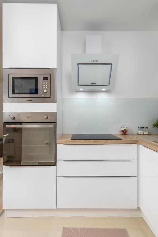 U cijeni najma apartmana osim svih modernih aparata bijele tehnike, TVa je i besplatan širokopojasni internet. Uz samu zgradu i u bližoj okolici se nalaze i ulični parkinzi te veliki zatvoreni gradski parking.