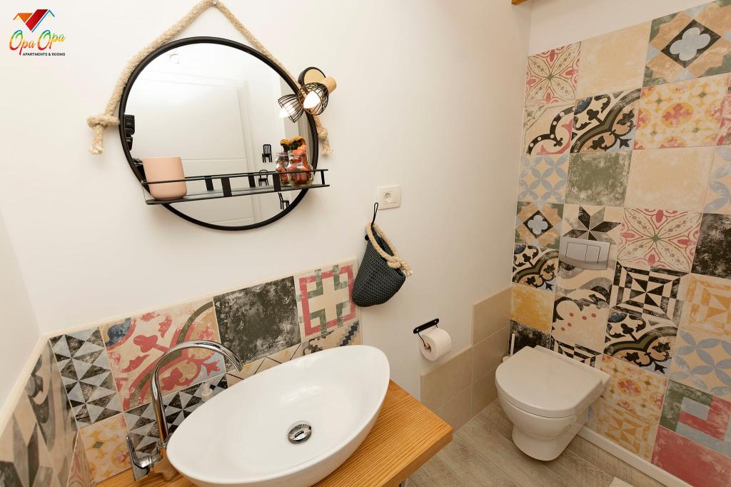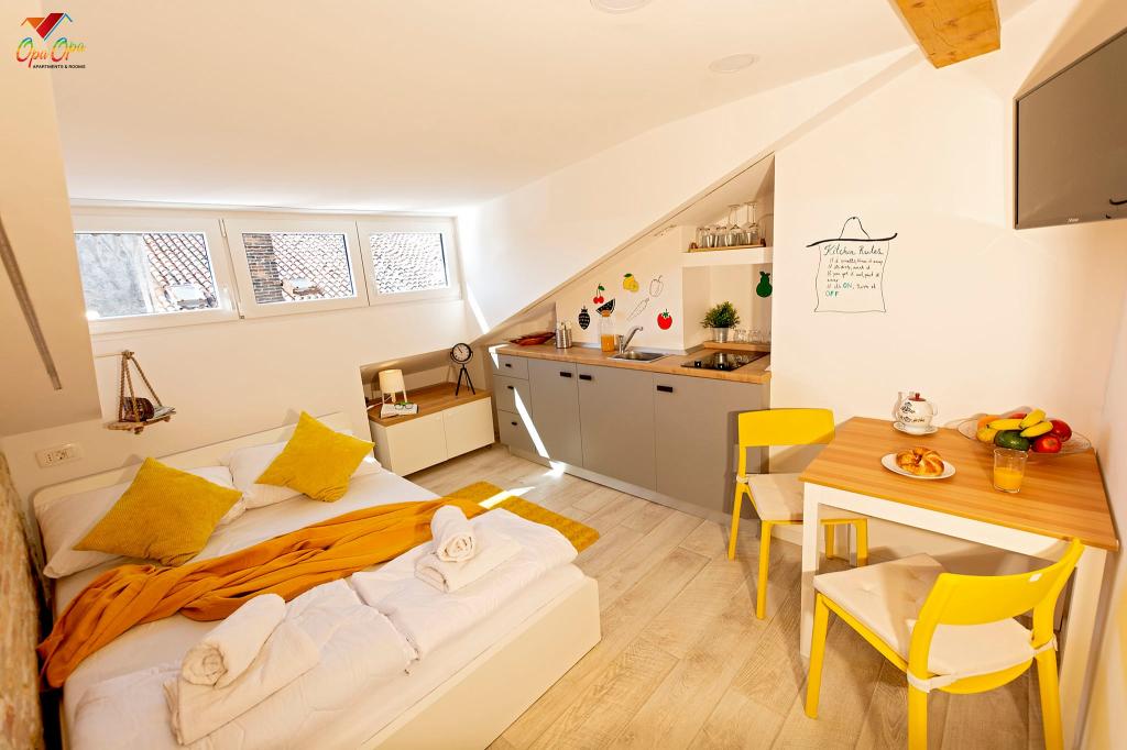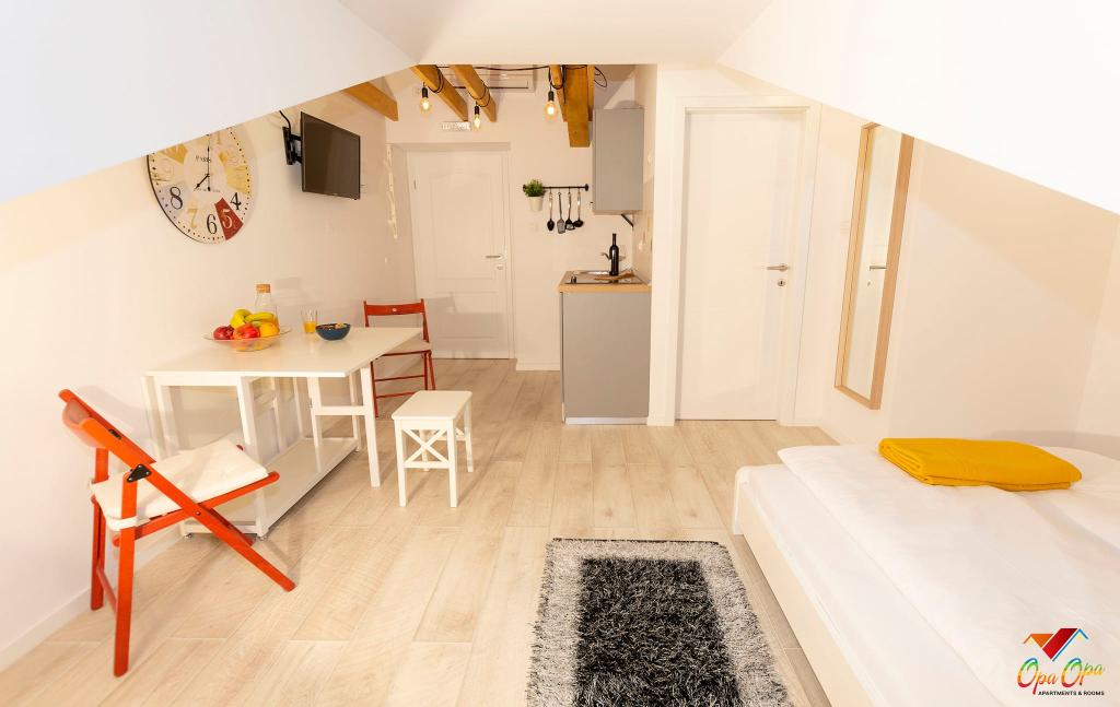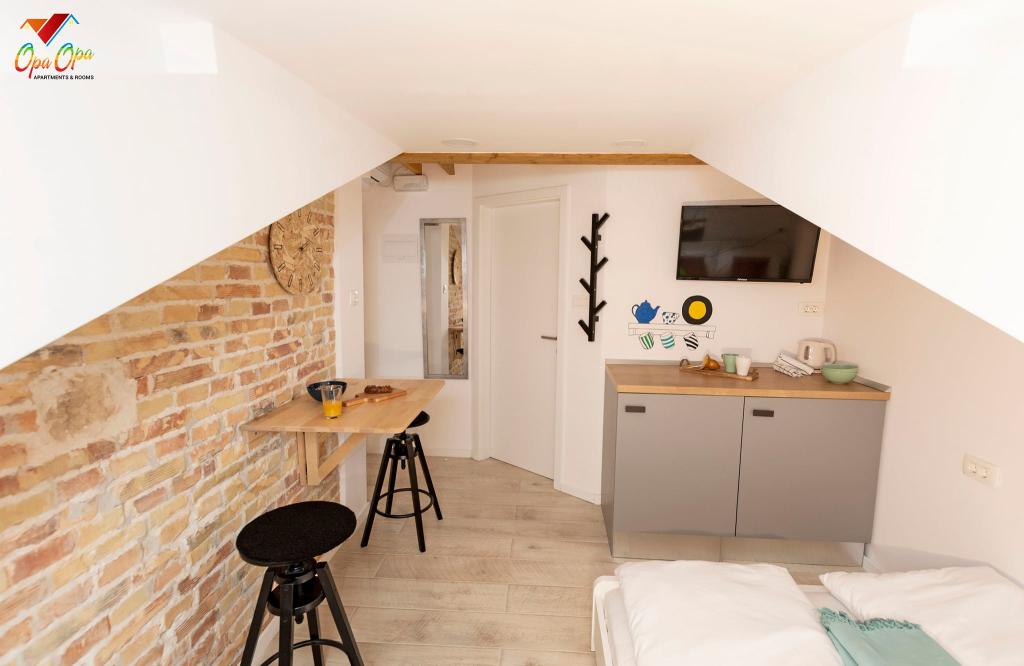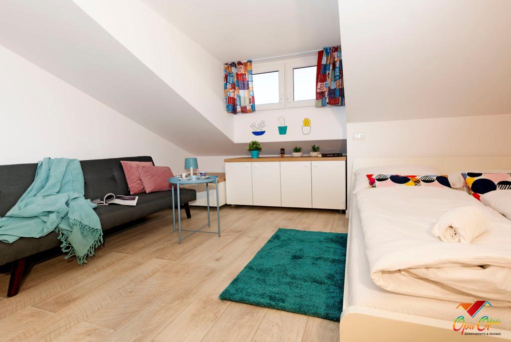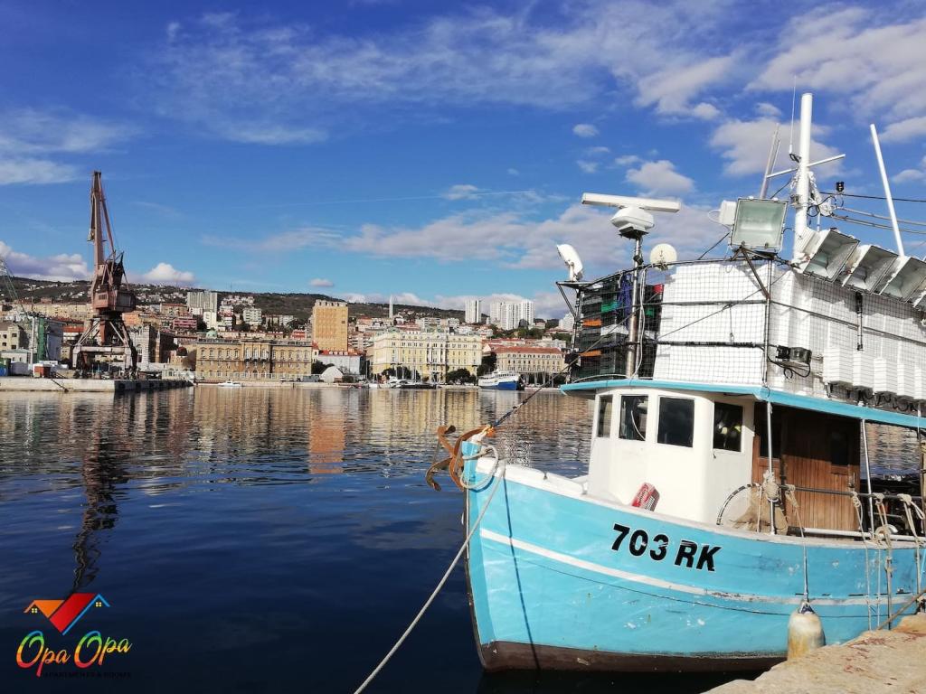 Apartman Opa Gold nalazi se u centru grada, uz glavnu šetnicu 'Korzo', nekoliko koraka od mora i gradske tržnice. 1 minuta hoda od Hrvatskog narodnog kazališta Ivana Zajca i 300 m od Pomorskog i povijesnog muzeja Hrvatskog primorja. Opa Gold je potpuno opremljen prostran apartman, veličine 50m2. Sastoji se od dvije sobe s dnevnim boravkom, kuhinje, blagovaonice i moderno opremljene kupaonice s tušem, perilicom i sušilicom robe, te sušilom za kosu. Kuhinja je opremljena svim najmodernijim ugradbenim aparatima, pećnicom, mikrovalnom, pločom za kuhanje, perilicom suđa. Kreveti imaju madrace sa 7-zonskim džepićastim jezgrama u kompletu s anatomskim jastucima, također s antibakterijskim navlakama. U neposrednoj blizini apartmana nalaze se brojni restorani, caffe barovi, trgovine, Gradska knjižnica, ljekarna, te ostali potrebni sadržaji.