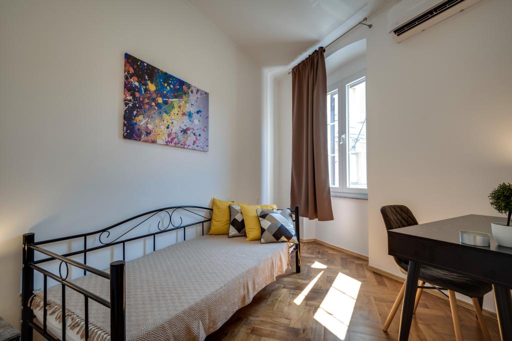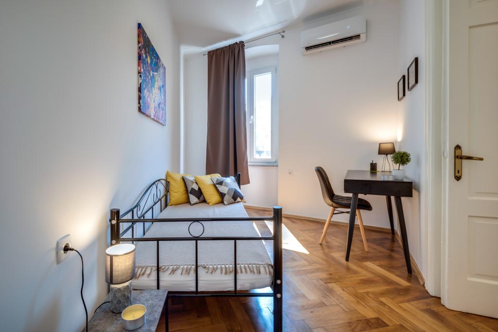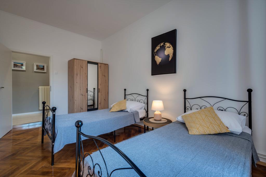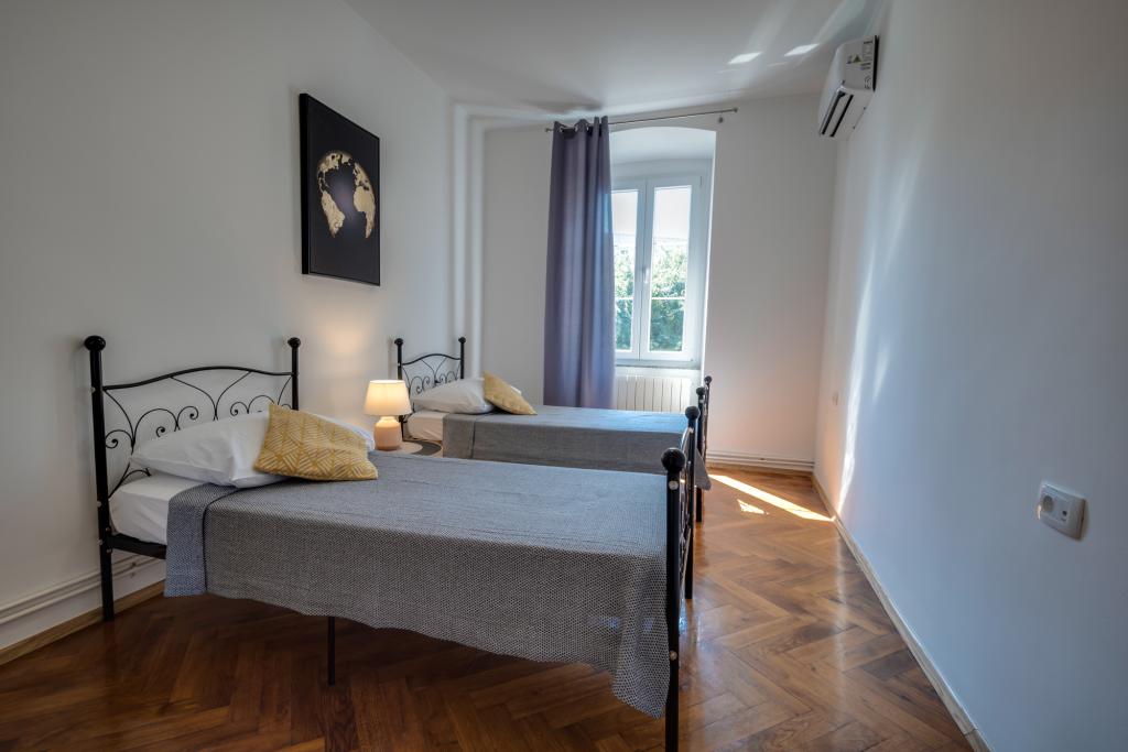 Apartman Sorelle Fiume smješten je u samom srcu Rijeke, na prvom katu zgrade udaljene samo 300 metara od mora. Ovaj prostrani apartman od 96 četvornih metara pruža udoban smještaj za do šest osoba. Sastoji se od tri spavaće sobe, dnevnog boravka, potpuno opremljene kuhinje, kupaonice i balkona s pogledom na vrt. Svaka prostorija opremljena je klima uređajem, a gostima su na raspolaganju besplatan Wi-Fi, TV s 150 programa, perilica rublja, perilica posuđa, štednjak s pećnicom, mikrovalna pećnica, aparat za kavu te hladnjak s zamrzivačem. Gosti koji su boravili u apartmanu Sorelle Fiume istaknuli su njegovu izuzetnu lokaciju, prostranost, čistoću te ljubaznost domaćina. Mnogi su pohvalili i blizinu restorana, kafića i kulturnih sadržaja, što čini ovaj apartman idealnim izborom za obiteljski odmor ili boravak s prijateljima u Rijeci.