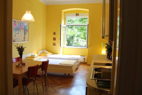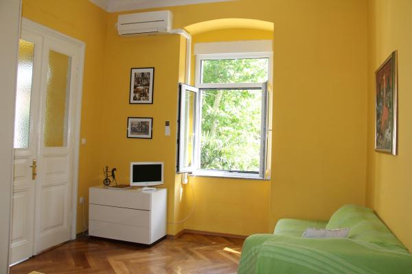 Dobrodošli dragi ljudi! Ja sam sunčani i udobni Apartman u samo centru grada Rijeke, gdje je sve na dohvat ruke, na 1 katu, u povijesnoj zgradi Venutti. Pružam potpuno opuštajuću atmosferu i oazu mira, s pogledom na prelijepi park, gdje ćete imati privatnost. Jedinstven sam umjetnički izraz, s puno boja i obalnog šarma koji će donijeti radost u vaš život. Imam sve što je potrebno za udobno živjeti u njemu; veliku spavaću sobu sa velikim bračnim krevetom i sa sofom, dnevni boravak s 2 ležaja, blagovaonom i potpuno opremljenu kuhinju, Wi-Fi internet, klimu, TV, grijanje, sef za vrijednosti, stroj za pranje rublja, sušilo za kosu, također pružam svakom gostu ručnike, posteljinu, plus kartu grada i brošure. Udaljen sam 2-5 minute hoda od glavne gradske šetnice Korzo, dućana, banka, muzeja, kafića, klubova, konoba, restorana, tržnice, brodskog pristaništa, autobusnog i željezničkog kolodvora. Parking imate na ulici (besplatno i uz nadoplatu) ili u garaži uz nadoplatu, odmah do apartmana.
