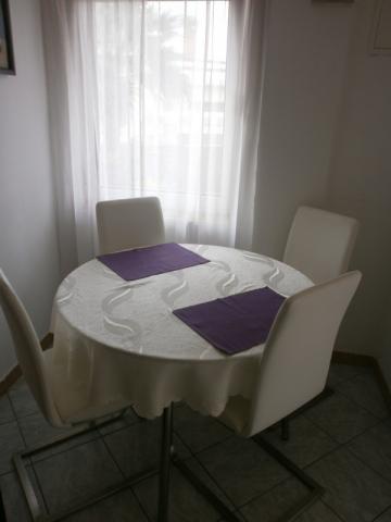 Apartman je u prizemlju obiteljske kuće s posebnim ulazom, terasom s pogledom na more, garažnim mjestom. Unutrašnjost je opremljena sa 2 dvokrevetne sobe, uz mogućnost korištenja dva dodatna ležaja u dnevnom boravku (kut na razvlačenje). Potpuno opremljena kuhinja (pećnica, hladnjak sa zamrzivačem, aparat za kavu), dnevni boravak (glazbena linija, radio, TVSAT/DVD); kupaonica (perilica za rublje, hidromasažna kada). Apartman je klimatiziran,a mogučnost je korištenja i wireless interneta. Također nudimo i smještaj u dvije dvokrevetne sobe sa upotrbom kuhinje i kupaonice koje se nalaze na prvom katu. Više informacija na upit.