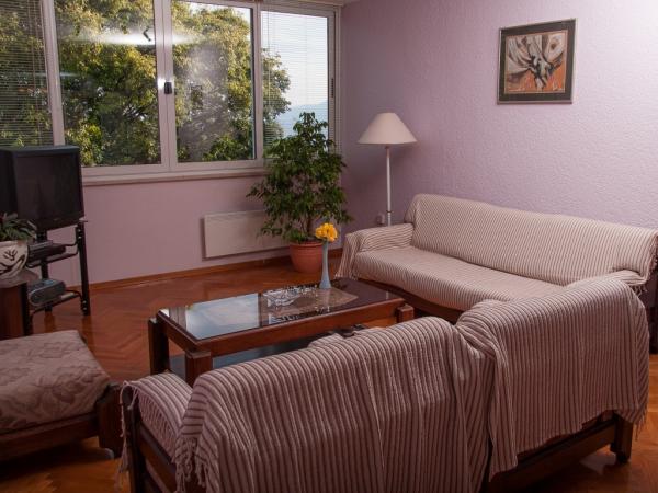 Apartman Veronika se nalazi na mirnom dijelu grada Rijeke, u dvokatnoj zgradi s uređenom okućnicom i vlastitim parkingom. Od centra grada je udaljen 4 km, a od Opatije 6 km. Zbog svog položaja ima odličnu povezanost s Rijekom i Opatijom. Iz apartmana se pruža pogled na more. U neposrednoj blizini se nalazi: novi sportsko-rekreativni centar s kompleksom bazena i uređenom plažom, teniski tereni, novoizgrađena atletska dvorana i nogometni stadion. Apartman raspolaže s dvije spavaće sobe, prostranim dnevnim boravkom, potpuno opremljenom kuhinjom i kupaonicom te balkonom. Apartman je opremljen s: osnovni ležajevi-4, pomoćni ležajevi- 2, klima uređaj, radio i 2 TV, satelitski program, internet, perilica rublja sa sušilicom, perilica suđa, sušilo za kosu, glačalo, zamrzivač, grijanje, parkiralište