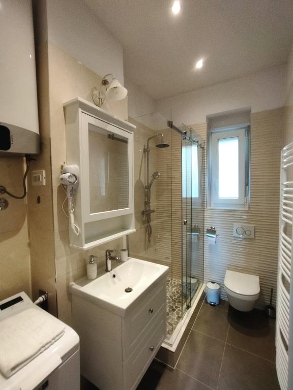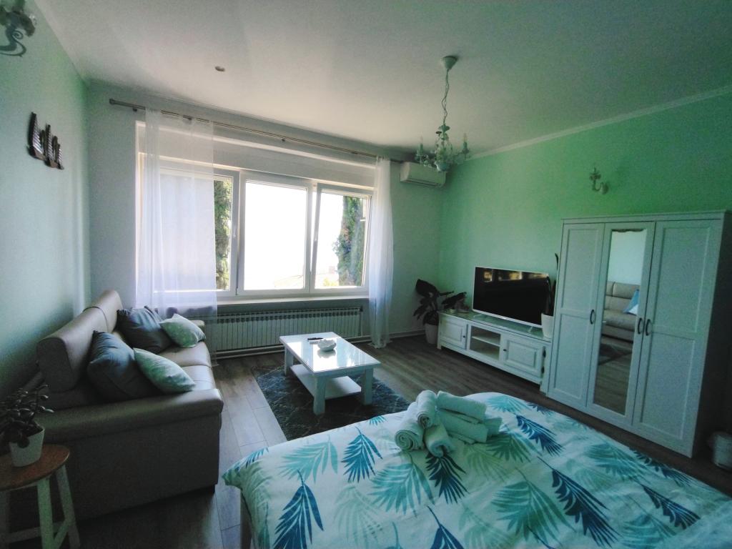 Potpuno opremljeni apartmani nalaze se u mirnom i atraktivnom dijelu grada Rijeke, na Pećinama, u obiteljskoj vili u drugom redu do mora, okruženi okućnicom sa privatnim parkingom. Do lijepo uređenih plaža potrebne su samo 3 minute hoda, a do centra grada Rijeke samo 5 minuta vožnje. U blizini se nalazi shopping centar sa brojim sadržajima. Apartmani raspolažu sa jednom spavaćom sobom sa pogledom na more, kuhinjom, kupaonicom, a apartman u prizemlju raspolaže dodatno sa natkrivenom terasom sa pogledom na more i roštiljem. Besplatan privatani parking dostupan za sve smještajne jedinice. Sadrže: bračni krevet 180x200, trosjed na razvlačenje 160x200, Wi-Fi, LED TV/ SAT/ DVD, radio, aparat za kavu, perilicu rublja, perilicu posuđa, mikrovalnu pećnicu, klimu, tuš kabinu, sušilo za kosu i dr.