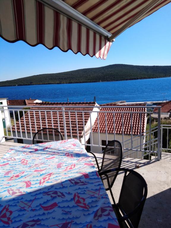 Apartman na prvom katu obiteljske kuće, vlastiti ulaz preko terase s pogledom na more, otoke, luku ,mirno mjesto, malo ljudi, bez prometnica i semafora. Vlastiti parking uz kuću, plaža prirodni šljunak, idealno za djecu. Apartman je opremljen moderno, funkcionalno, mikrovalna, pekač kruha, tv, zamrzivači, hladnjaci. Na plaži udaljenoj 50 suncobran. Katamaran vozi 35 min od Zadra, trajekt 1 sat i 15 min svaki dan, trgovina pokretna jednom tjedno, terasa za 10 ljudi ako pozovete prijatelje, možete kupiti ribu od lokalnih ribara,,,sve za ugodan život, osobno goste vodim na otok kao vlasnica, smještam ih i upoznajem sa svime u stanu. Prvog dana po dolasku nudim ručak dok se smjeste, u app. Ima ulje, mlijeko ,maslinovo ulje vlastite proizvodnje ,toaletnih potrepština, vino mineralna i pivo dok se ne opskrbe.
