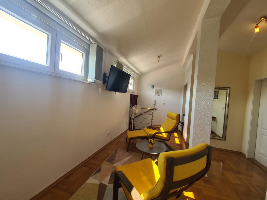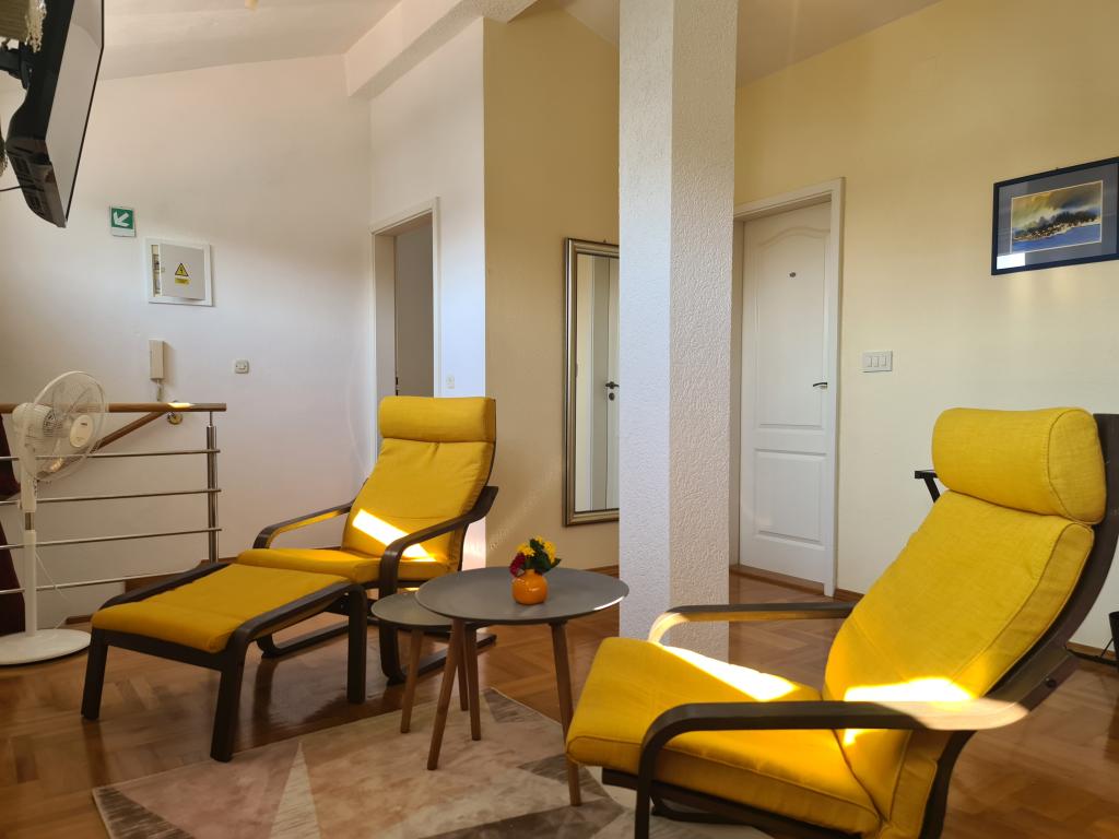 Pročitaj više Smještajne jediniceZa svaki upit prije rezervacije šaljemo kućni red na uvid. Cijena smještaja uključuje: uobičajenu potrošnju struje i vode, klimatizaciju u ljetnom periodu (grijanje u zimskom periodu), završno čišćenje, posteljinu, kupaonske ručnike, jedno parking mjesto za osobno vozilo i boravišnu pristojbu. Isključivo i samo uz predhodni dogovor mogućnost da gosti dovezu ili donesu raznorazne skutere, romobile, sup-ove i sl. u apartman i/ili okućnicu odnosno teren. Vrijeme odjave je do 10 sati, a prijave u 14 sati. Po primitku potvrde rezervacije gost je obavezan u roku od 2 dana uplatiti akontaciju od 25% bankovnom uplatnicom i pismenu potvrdu o uplati poslati na e-mail, čime je rezervacija definitivno potvrđena. Plaćanje razlike do ukupnog iznosa smještaja vrši se odmah po dolasku.