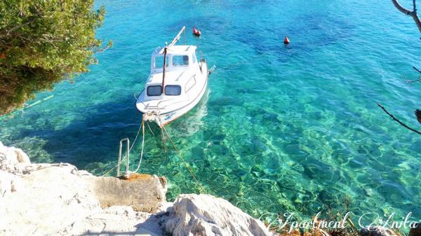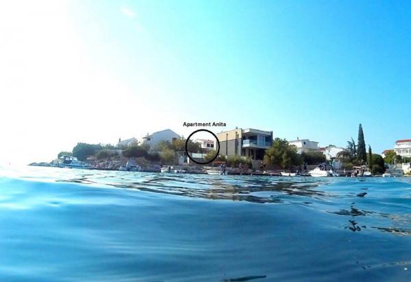 Apartman Anita se nalazi u mirnom okruženju. Na prvom je katu, tako da ćete imati lijepi pogled na more sa sve tri strane apartmana i nije na glavnoj cesti. Površina apartmana je 65 m2 i ima dva balkona i terasu. Apartman ima dvije sobe (jedna je bračna soba a druga je s dva kreveta za jednu osobu), kupatilo, kuhinju i udoban dnevni boravak sa klima uređaj i smart TV sa satelitskim prijemnikom. Apartman na ulazu ima veliku terasu sa suncobranom, prostorom za sjedenje i roštiljom. Apartman ima besplatni internet. Jedno parkirno mjesto je ispred kuće. Udaljenost od mora i plaže iznosi 20 m, a do najbližeg dućana 100 m. Ima raznih plaža, od šljunčanih do stjenovitih te onih koje su betonirane. Najljepše su one šljunčane na kojima možete pronaći prirodni hlad od stabala ili ako želite možete koristiti naše suncobrane za plažu.
