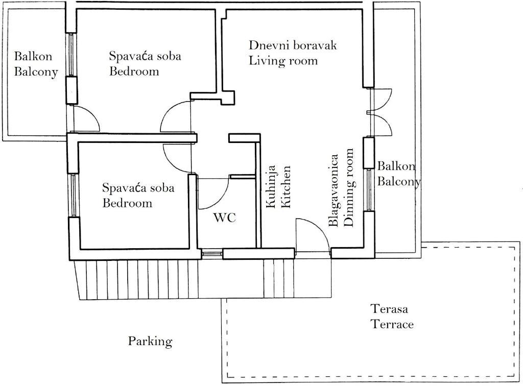 Turistička pristojba je uključena u cijenu.Lijep dodir (Engleski dobrodošli - Hrvatski nažalost ne znam) je jedan stan po katu. Dva balkona - Jedna od spavaćih soba - zapad - lijepim pogledom večernje; Druga iz kuhinje na istok - sunčanih jutra :). Terasa ispred glavnog ulaza - djeca učinila odlagališta dmuchańców i drugih vodenih pribor :). Vlasnici vrlo prijateljski i prilagodljiv, iako prisutna samo vikendom. Kuća je u drugom redu od oko 15 metara od rive. Plaže za djecu: mala oko 100 metara osebujna oblutcima; visoka preko zaljeva oko 300 m, ali to je velika vidljivost sa balkona u kuhinji. Šljunčana buffet i tuš. vrlo mirnom području u središnji Mista oko 10 - 15 minuta hoda. Preporučiti
