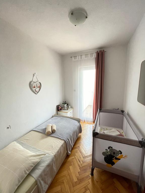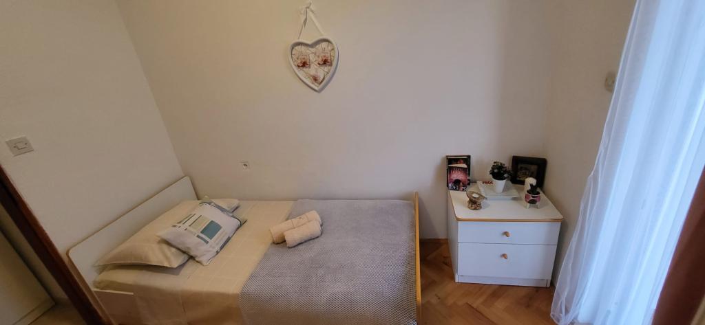 Apartman se nalazi u mirnom djelu mjesta, 5 minuta hoda do plaže, 15 minuta hoda do centra i svih popratnih sadržaja. Apartman sadrži i parkirno mjesto.