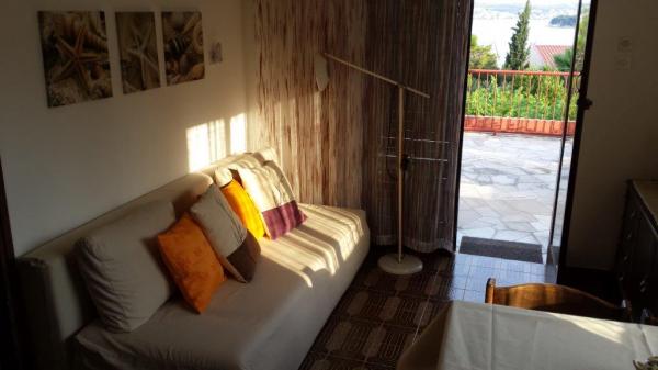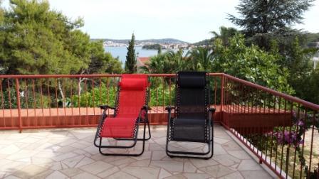 Apartman je za 4 1 osobe. Ima dvije sobe. Jedna je sa velikim bračnim krevetom, a druga je sa dva odvojena. U dnevnom boravku komforni pomoćni ležaj. Apartman ima oko 50 m2 i veliku terasu 35 m2 sa pogledom na more. Udaljenost od mora je oko 40 m. Apartman je u mirnom dijelu Rogoznice. Udaljenost do trgovine i banke je oko 200 metara. Udaljenost do samog centra Rogoznice je oko 400 metara. Udaljenost do Marine Frapa je oko 600 metara. Ima mjesto za parking. Moguće je dobiti i vez za manji brod. U donjem dijelu kuće je susretljivi domaćin. Mogućnost korištenja grilla. Mogućnost korištenja stražnje terase 20 m2. Korištenje solarnog tuša u dvorištu. WiFi free !!!