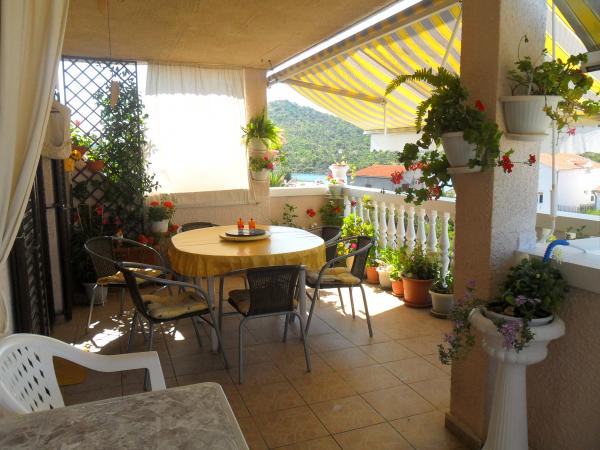 Potpuno opremljen apartman koji se sastoji od 3 spavaće sobe, kuhinje i dnevnog boravka, kupaonice i velike terase. Osigurano parkirno mjesto te vanjski grill u vrtu. Udaljenost od plaže je 100 m. bez potrebe prelaska velikih prometnica. Trgovina u blizini, mirna i tiha okolina, izrazito čisto more, plaže su pogodne i za malu djecu.