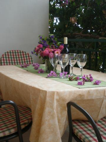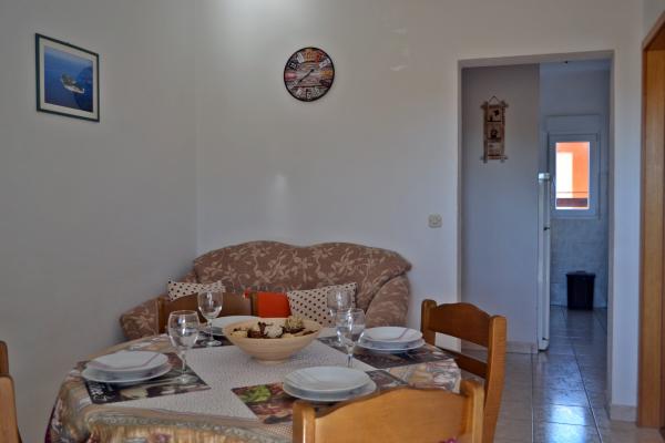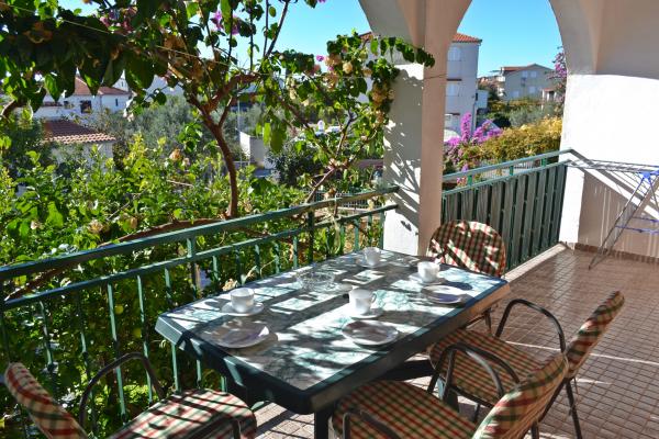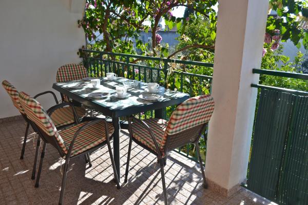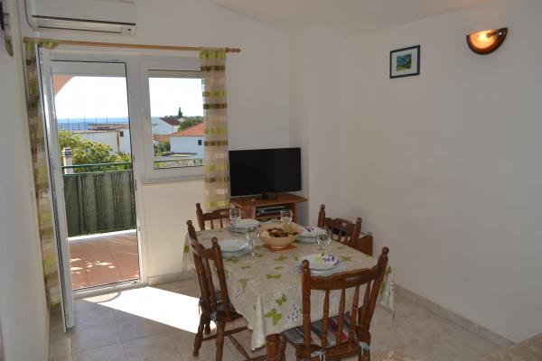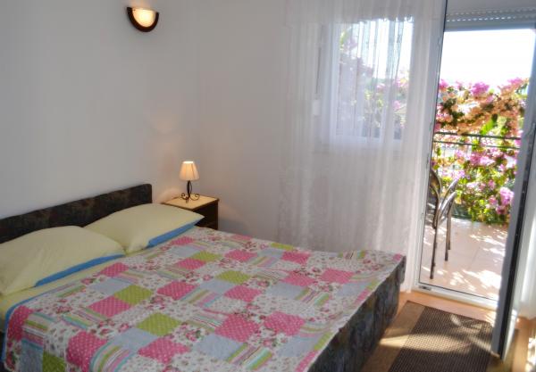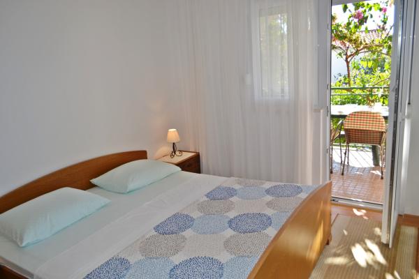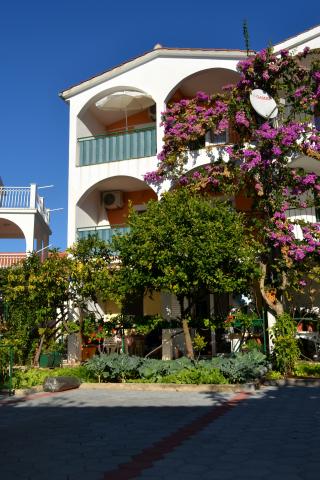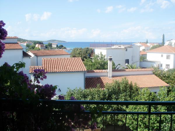 Potpuno opremljeni apartmani s pogledom na more, udaljeni od plaže 50 metara, od centra 10 minuta hodom. Svaki apartman je klimatiziran, s mogućnošću korištenja interneta. Svaki apartman ima zasebno kupatilo, odvojenu kuhinju s kuhalom za vodu i pećnicom. Apartman ima dvije sobe, u svakoj sobi se nalazi bračni krevet. Jedna soba izlazi na terasu s balkonom, dok druga ima veliki prozor. U apartmanu se nalazi dnevni boravak s blagavaonicom i kaučom na razvlačenje. Apartmani imaju satelitsku i TV. Svaki apartman ima terasu sa stolom i stolicama, te suncobran. Kuća posjeduje parking, te svaki apartman ima svoje zasebno parkirno mjesto ispred kuće u dvorištu. Također, na korištenje gostima se nudi i natkriveni roštilj.