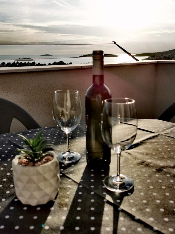 Apartmani Antonio su lijepo uređeni. Imaju prekrasan pogled na more i otoke.Nalaze se u privatnoj kući na 2 i 3 katu. Kuca se nalazi u mirnom okruženju. Udaljenost od mora je 90m kao i do centra. Nacionalni park Krka je udaljen 40km,grad Šibenik 35km,a grad Split 50 km