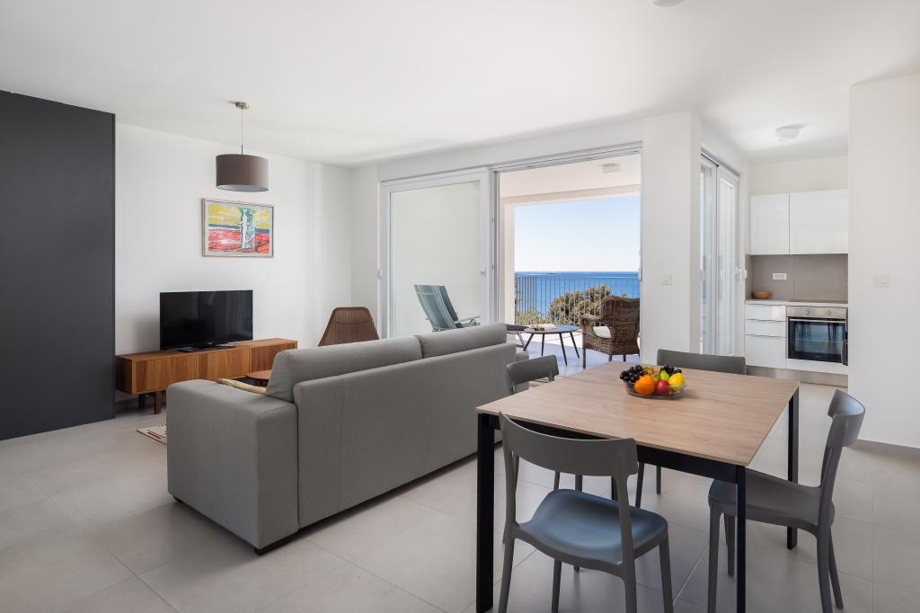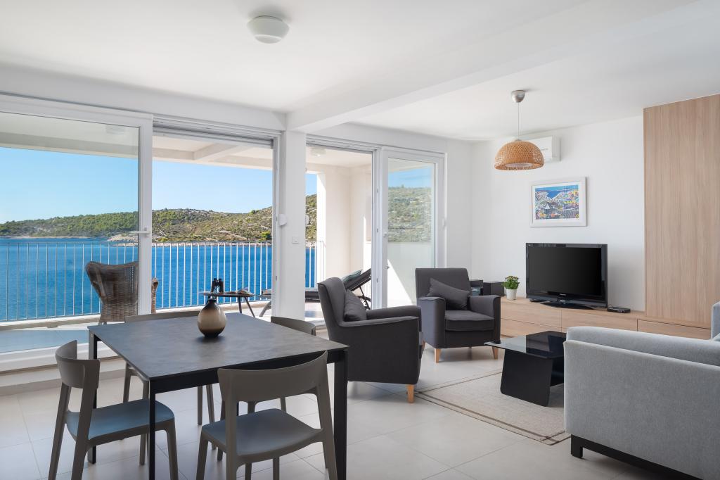 U samom srcu sunčane Dalmacije, u turističkom naselju Kanica, smjestila se vila CapeCarol. Ova moderna vila nalazi se tik uz obalu i pruža veličanstven panoramski pogled na kristalno čisto more i netaknutu prirodu kojom je okružena. Prekrasna vila CapeCarol sa stambenom površinom od 310 m2 gostima nudi privatnost boravka na tri potpuno opremljene etaže-apartmana. I eksterijer i interijer kuće karakterizira čist, moderan stil koji vili daje prirodnu ugodnu atmosferu. Svaki apartman površine 95m2 uz velike dnevni boravak i kuhinju, ima 2 spavaće sobe (1 s bračnim krevetom i 1 s odvojenim krevetima) i 2 kupaonice. Svaki apartman ima veliku terasu s prekrasnim pogledom na morsku pučinu. Ekskluzivno korištenje bazena (15 m2) i prednjeg dvorišta/terase je na raspolaganju uz najam apartmana SeaCarol u prizemlju. Vila raspolaže s ukupno 3 privatna parkirna mjesta, 1 mjesto za svaki apartman. Privez za manji brod je moguć.