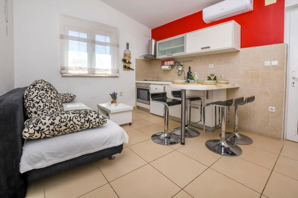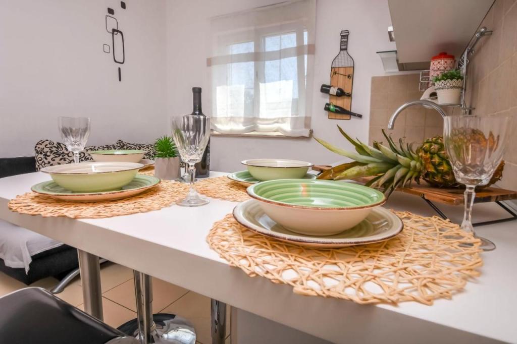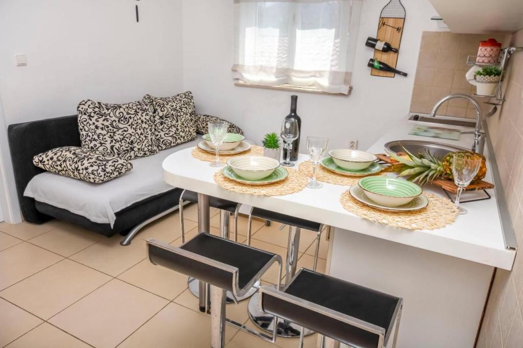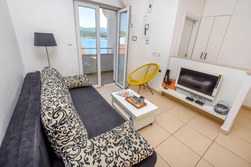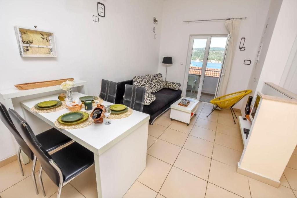 U ponudi izdvajamo 2Jednosobna apartmana, dva dvosobna i 1 put trosoban apartman u novogradnji na vrhunskoj i jedinstvenoj poziciji uređivani po zahtjevima za zvjezdice, kompletno luksuzno namješteni i opremljeni. U spavaćim sobamai kreveti 160200 za dvije osobe, u dnevnom boravku 180200 garnitura na razvlačenje sa ugrađenim anatomskim madracem plus dodatni ležaj na zahtjev. Ultra moderna kuhinja sa svim ugradbenim i ostalim potrebnim aparatima. Apartmani su također opremljeni sefom, klimom, LCD televizorom, internet usb priključak, perilicom rublja u vlasničkom apartmanu. Dječji krevetić na zahtjev. Osigurano parking mjesto i sidrište za brod. Nadamo se da ćete se ugodno osjećati u našim apartmanima, uz napomenu da je kompletan namještaj anatomski i po mjeri.