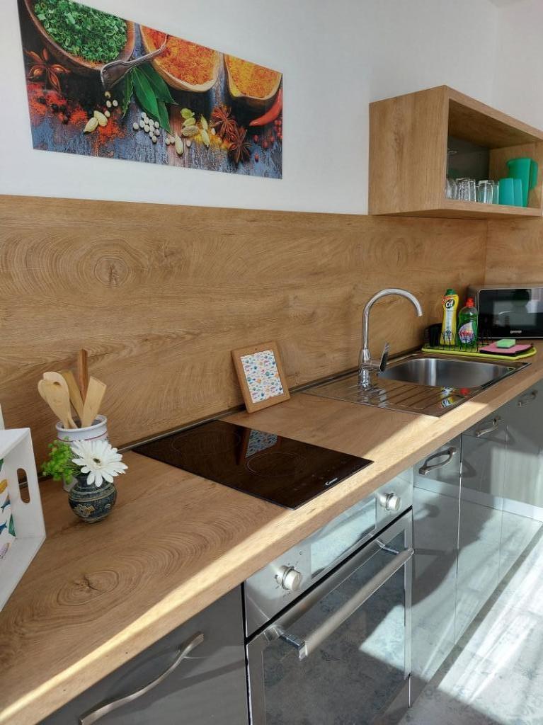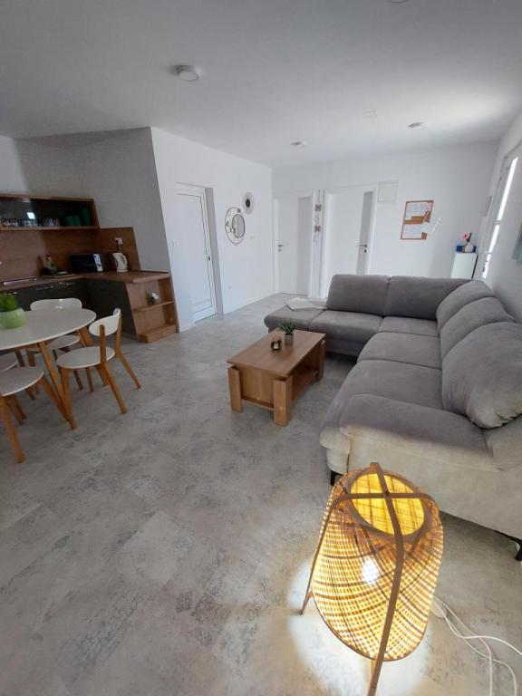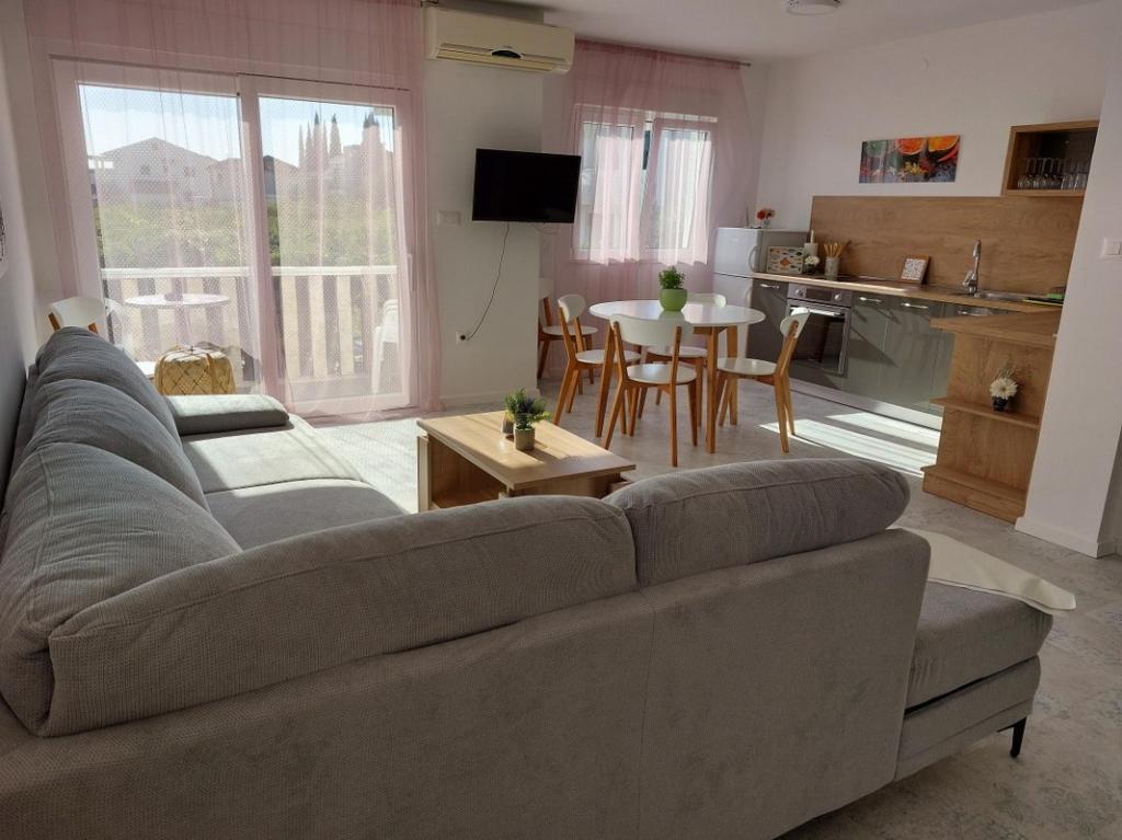 Novo uređen apartman, smješten na prvom katu kuće. Apartman ima dvije spavače sobe, dnevni boravak, kupaonicu i opremljenu kuhinju, te dva balkona. Nalazi se u mirnom naselju Stupin Čeline , te smo udaljeni 30m od plaže koja se prostire kroz cijelo naselje. Kuća ima osiguran parking za sve goste, veliku terasu s roštiljem i dvorištem za druženja ili dječiju igru.