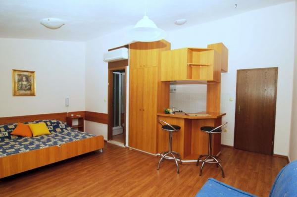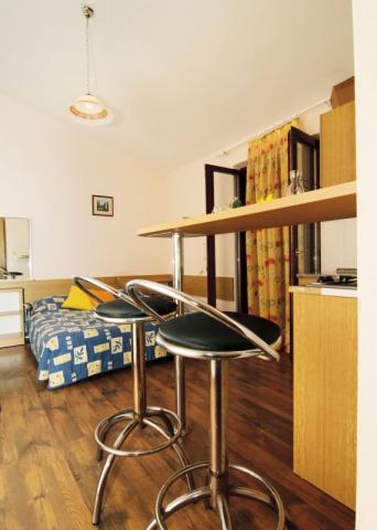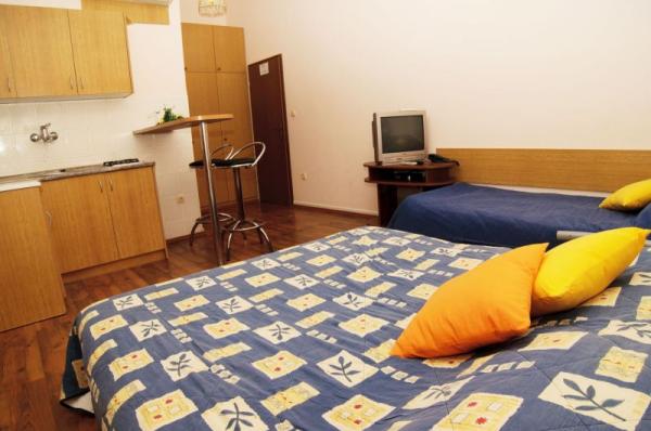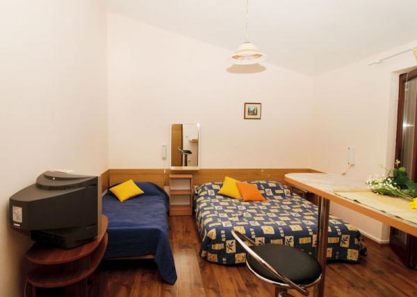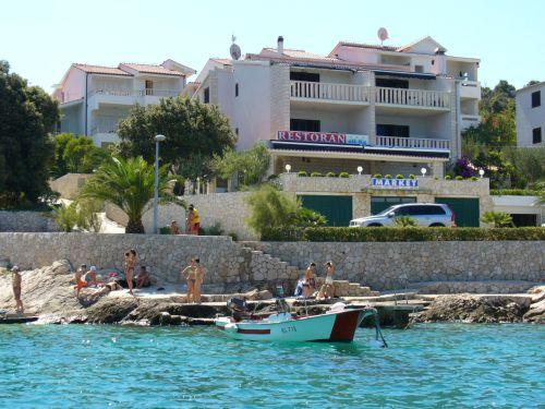 Turistička pristojba nije uključena u cijenu.Kako bismo Vam osigurali ugodne trenutke zabave i opuštanja u hotelskoj ponudi također imamo unutrašnji bazen i saunu čije je koristenje u razdoblju pred i posezone za goste hotela besplatno. Uživajte u autentičnom dalmatinskom ambijentu naseg hotelskog restorana, s prostranom terasom nadomak moru s koje se pruža veličanstven pogled preko plaže prema zapadnom horizontu. Svakodnevno nudimo širok izbor ukusnih mediteranskih jela pripremljenih na tradicionalni način od uvijek svježih namirnica po vrlo povoljnim cijenama. Zajedničke usluge na upit: Wi-fi, mogućnost korištenja računala s interetom i sef na recepciji, glačalo, mikrovalna pečnica, stroj za pranje rublja, dječji krevetić, mogućnost držan jmalih kućnih ljubimaca, vez za brod
