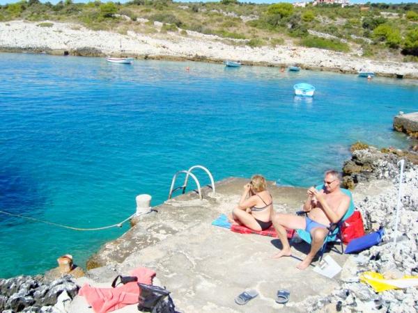 Bili smo 4 odrasle osobe i 3 djece u dobi od 5 do 15 godina u stanu. Apartman je vrlo čist, prostran s velikim balkonom s pogledom na more. Vlasnici su nevjerojatno prijateljski, korisna i lijepa. Dali su nam neke velike savjete o dobrim restoranima i mjesta za posjetiti. Na plaži stresom pasmine su pretočena u krškim stijenama, gdje možete uživati u prekrasan dan. More je jednak vrlo duboko, tako da djeca mogu skočiti u more prekrasan. Na čelu uvale ali možete izvoditi stan u vodu, tu je šljunčana plaža. More je lijepo i kristalno jasno. Iz stana ste s autom u 5 minuta u Rogoznici. Primošten, Šibenik, Trogir, Slapovi Krke, Split je postići ništa veliko. All-around veliki odmor! Preporučeni !!!