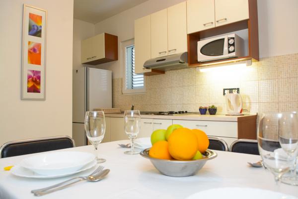 Apartmani su smješteni u prvom redu do mora s prekrasnim pogledom na more i jahte. U blizini se nalazi banka, bankomat, trgovine, suvenirnice , pijaca i restorani pa gosti svo svoje slobodno vrjeme imaju isključivo za svoj odmor. Mjesto je okruženo dugom šetnjicom koja se koristi i za vožnju biciklom.
