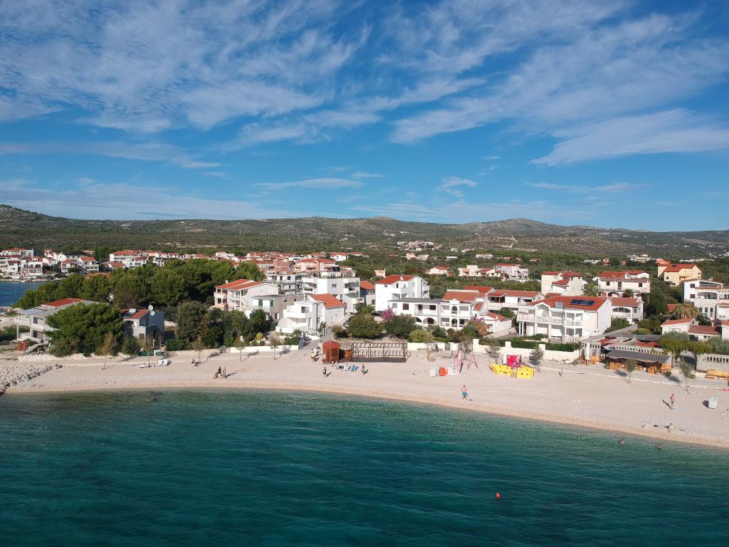 Kompletno opremljen apartman u mirnom dijelu Rogoznice, 30 metara do plaže s pogledom na more. Udaljenost od centra Rogoznice je 1000 metara.