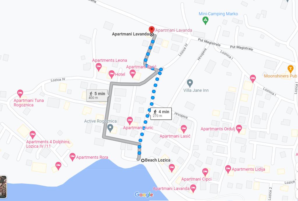 Novi i moderno opremljeni apartmani Lavanda smješteni su u mirnom i atraktivnom dijelu Rogoznice. Šetnicom uz obalu, koja se nalazi svega cca150 metara od apartmana, kroz 10 minuta možete biti u centru Rogoznice. Uz šetnicu, kao i u centru nalaze se brojni restorani i zanimljivi sadržaji koji će uz čisto more i ukusnu hranu upotpuniti doživljaj ovog malog dalmatinskog mjesta. Najbliža plaža nalazi se 4 minute hoda od apartmana. Gostima apartmana je na raspolaganju i roštilj na kojem mogu pripremati svježa riblja pa tako i druga jela. Gostima su na raspolaganju dvije smještajne jedinice s terasom s pogledom na more i Rogoznicu. Smještajne jedinice imaju svoje vanjske ulaze koji omogućavaju potpunu privatnost.U cijenu je uključen parking,internet klima i boravišna pristojba.