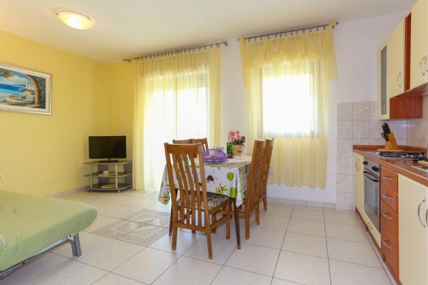 Dobrodošli! Apartmani Lemo nalaze se 50 m od mora i plaže. Raspolažemo s ukupno 4 moderno opremljena apartmana, od kojih su 2 na prvom katu a 2 na drugom katu. Apartmani A2 1 (max kapacitet: 3 osobe) sastoje se od spavaće sobe s francuskim ležajem i francuskim balkonom, potpuno opremljenom kuhinjom i blagavaonom i dnevnom prostorijom s pomoćnim ležajem, kupatilom te prekrasnim terasama s pogledom na more. Svi apartmani su klimatizirani. Apartmani A4 1 (max kapacitet: 5 osoba) sastoje se od 2 spavaće sobe s francuskim ležajevima i francuskim balkonima, potpuno opremljenim kuhinjama s blagavaonicom i dnevnim prostorijama s pomoćnim ležajem, kupatilom te prekrasnim terasama s pogledom na more. Osiguran parking. Internet gratis. Mogućnost korištenja vanjskog tuša.