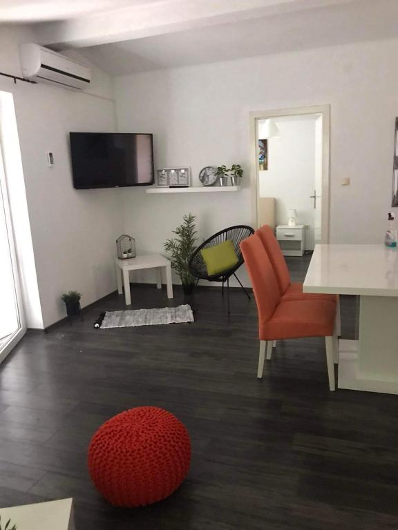 Pročitaj više Smještajne jediniceUplata akontacije obavezna u iznosu od 30% ukupnog iznosa. Ostatak iznosa plaća se po ulasku u apartman u gotovini. Dodatna osoba u apartmanu naplaćuje se 20€. U apartmanu smiju boraviti isključivo osobe koje su prijavljene, sve ostale osobe (prijatelji) samo uz odobrenje vlasnika. Čišćenje apartmana je u cijeni smještaja osim u slučaju da apartman nije adekvatno održavan . U tom slučaju cijena čišćenja apartmana je od 50€—90€ ovisno o veličini apartmana. Korištenje klime u cijeni Kućni ljubimci ( pas) naplaćuju se po noćenju od 10-20€ ovisno o veličini psa. Vrijeme odlaska do 10 h, dolazak iza 15 h.