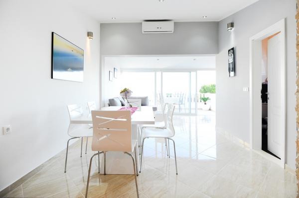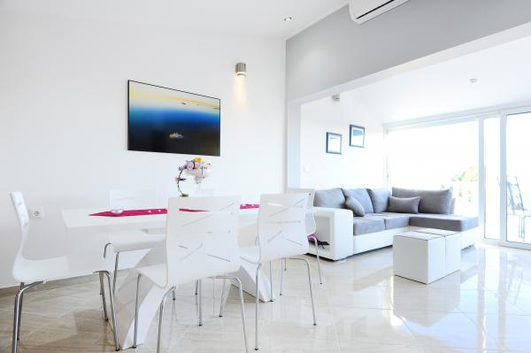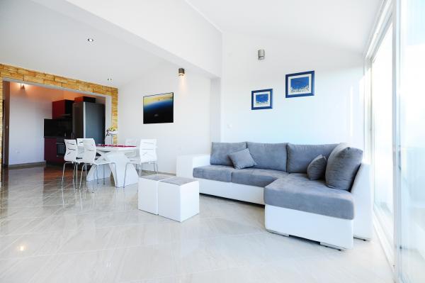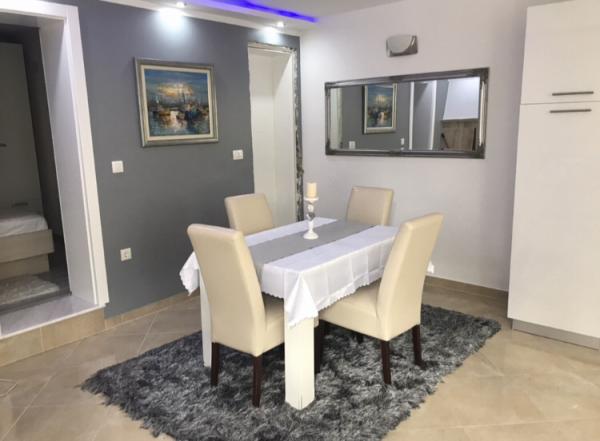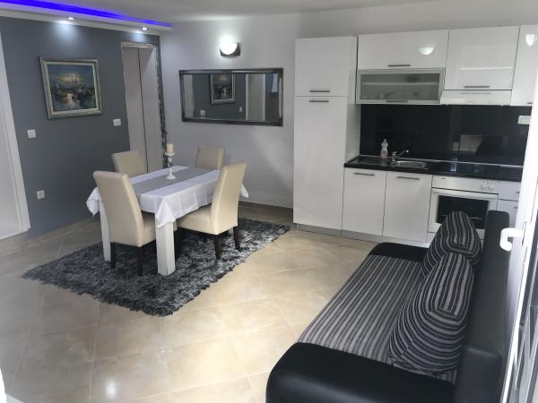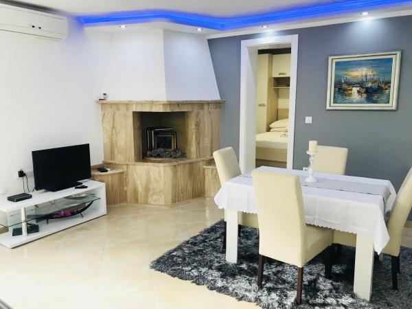 Dva novouređena apartmana u mirnom dijelu Rogoznice, nude sve što Vam je potrebno za potpuni odmor i relaksaciju;mir, udaljenost od gradske vreve, privatno mjesto na plaži uz ležaljke i suncobrane, mogućnost iznajmljivanja brodice za istraživanje i obilazak okolnih otočića. Pogled s terase seže sve do svjetionika Mulo i okolnih otočića.. Nedaleko se nalazi centar Rogoznice, a za svega 7 minuta vožnje, imate priliku posjetiti i grad Primošten. Veselimo se Vašem dolasku!