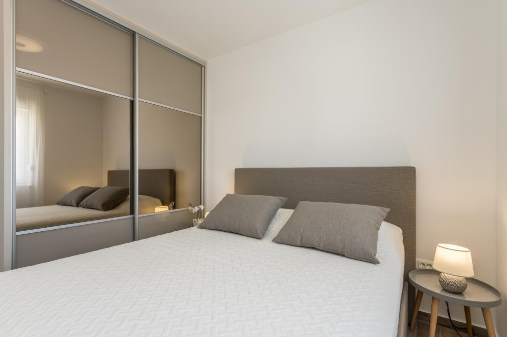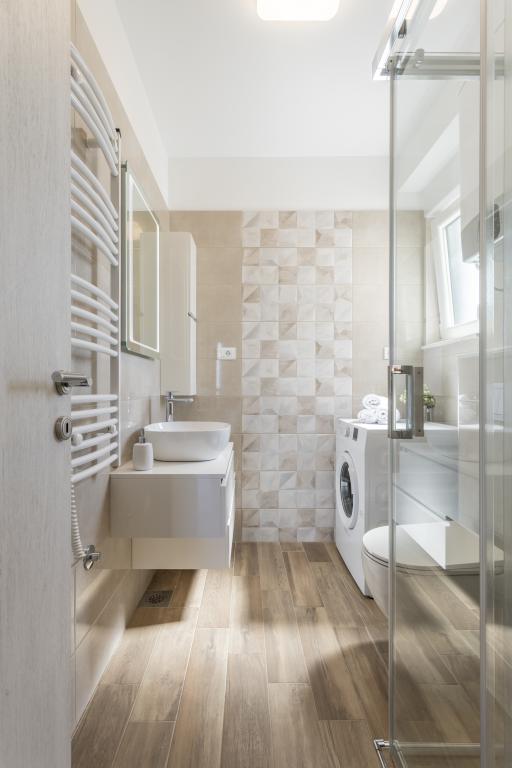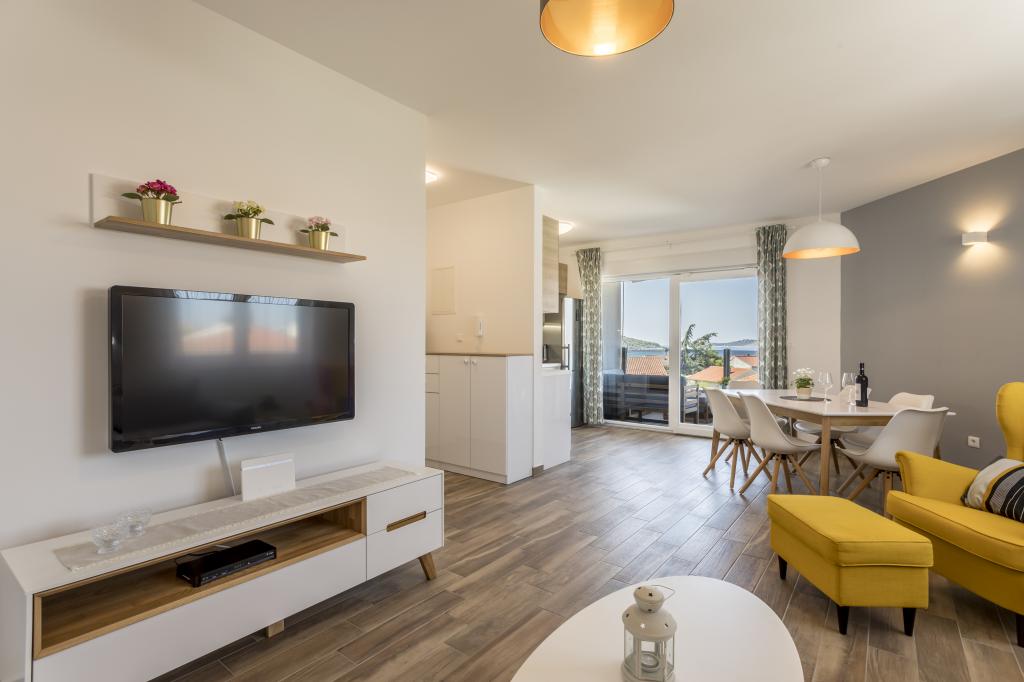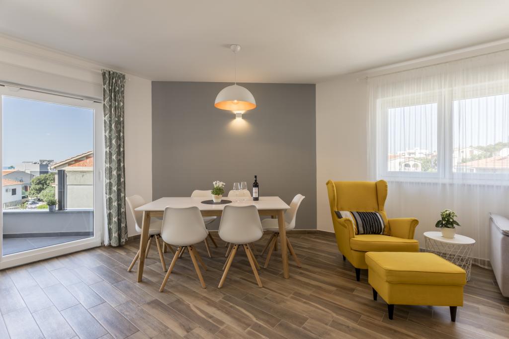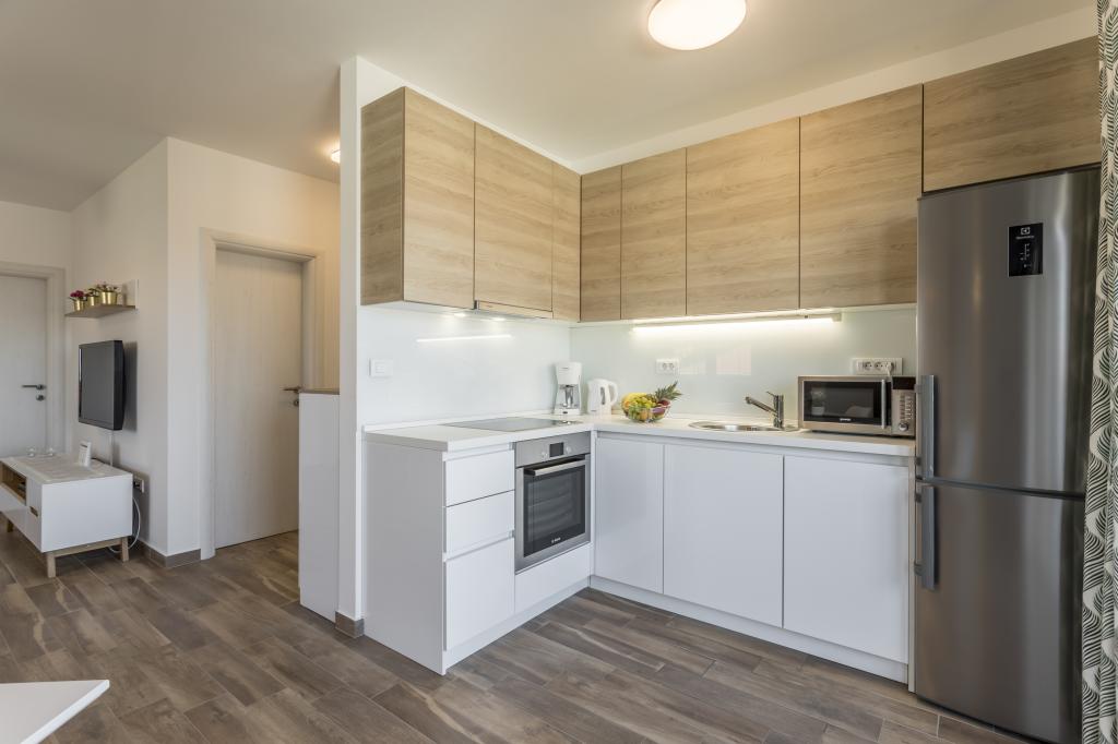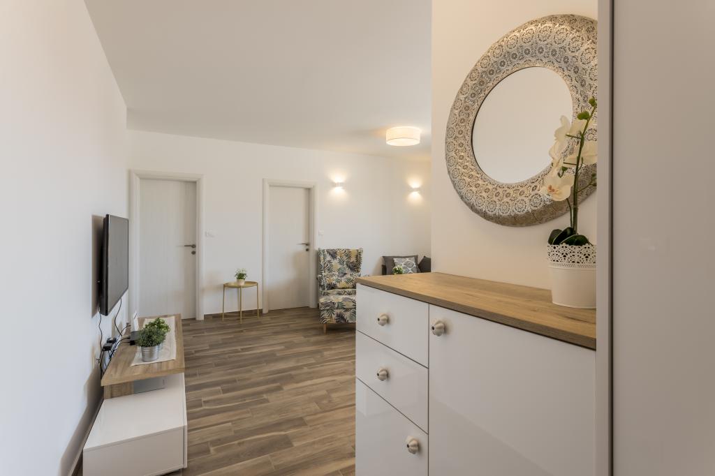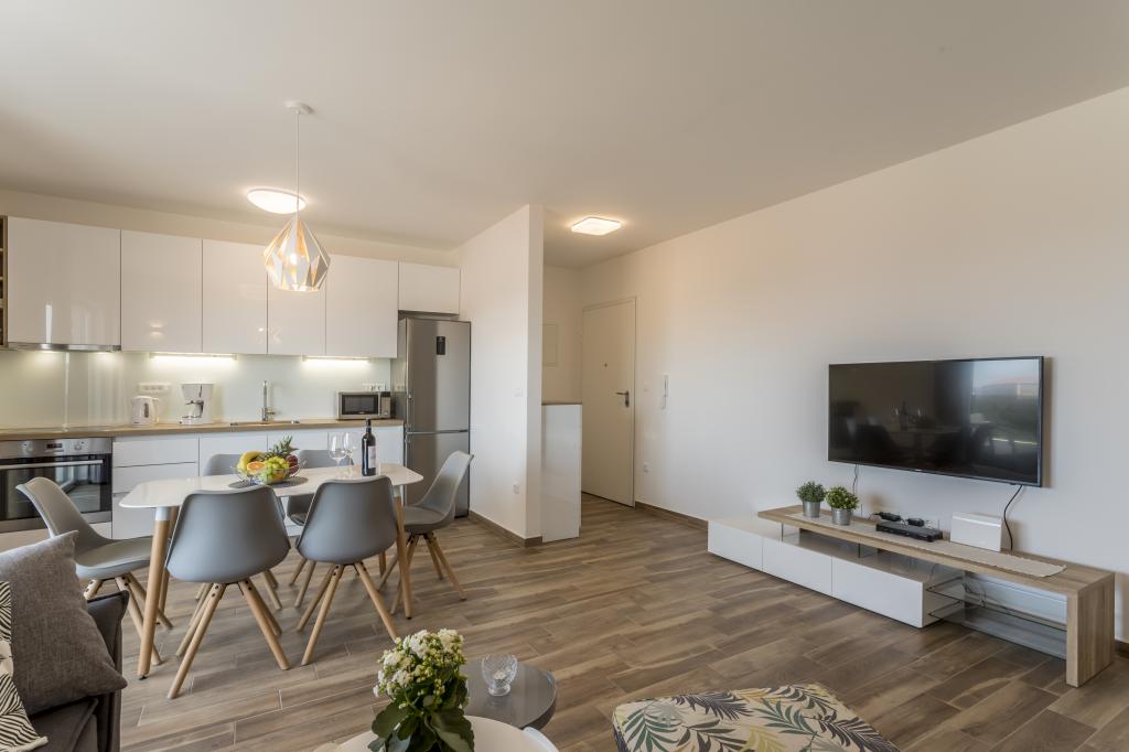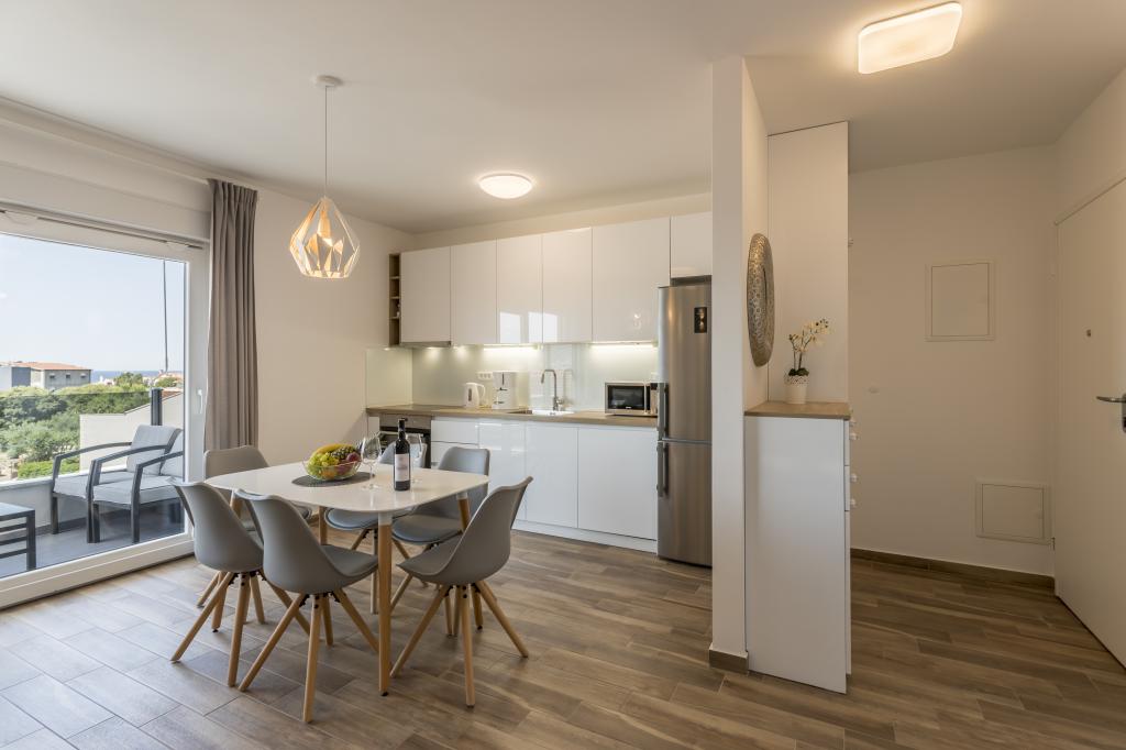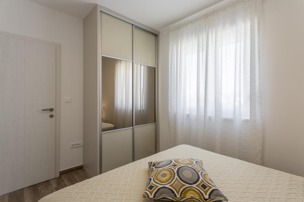 Baš sve je kao na slici, novo i čisto. Kreveti su izuzetno kvalitetni i udobni. Ostali namještaj i oprema su kvalitetni i s ukusom kombinirani. Klima uređaj je bešuman, a zujanje vanjskih jedinica se ne čuje pa se može u miru uživati na terasi i spavati uz otvoren prozor. Kuhinja je kompletno opremljena ako želite kuhati. More i betonska plaža su udaljeni 1 minutu hoda, a do šljunčane plaže ima 3-4 minute šetnje uz more. Smještaj je idealan za miran obiteljski odmor. Nas je bilo 4, proveli smo u apartmanu 9 dana i svi smo se u apartmanu super osjećali i bili više nego zadovoljni! Gosp. Damir i njegova supruga su jako ljubazni.