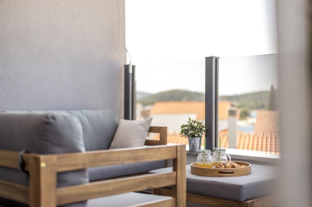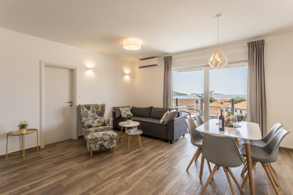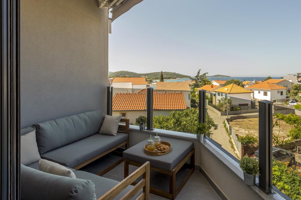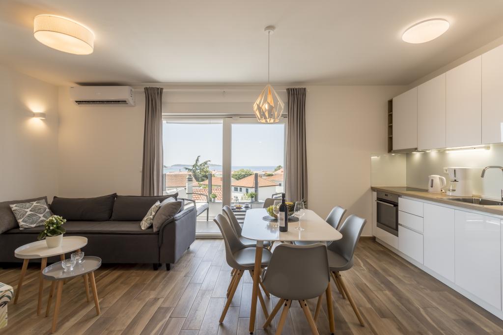 Luksuzno uređeni i potpuno opremljeni novi apartmani s pogledom na more, samo minutu hoda udaljen od velike šljunčane plaže, u mirnom dijelu Rogoznice, predio Lozica. Apartmani se nalaze na drugom katu novogradnje, ispred koje je osigurano besplatno parking mjesto. Sastoje se od dvije bračne sobe sa velikim krevetima, kuhinje i blagovaone sa dnevnim boravkom, te kupaone i terase s koje se pruža panoramski pogled na more.