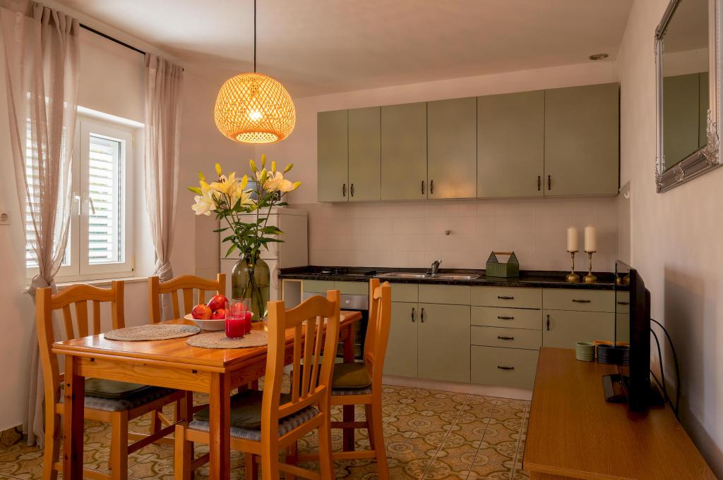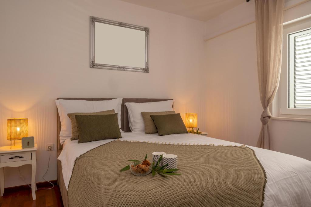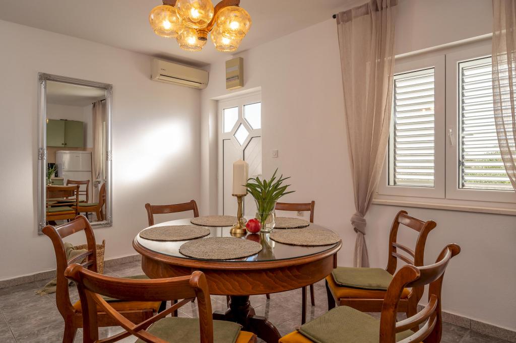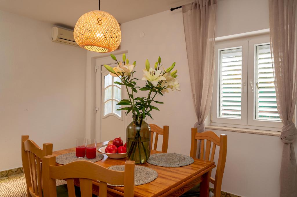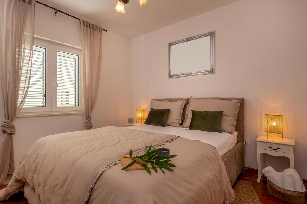 Nalazimo se u prekrasnoj uvali Lozica, u neposrednoj blizini mora (30)m, idealno mjesto za obiteljski odmor u opuštenoj atmosferi izvan prometni gužvi. Apartmani se nalaze svega 15 min. hoda od centra u kojem je poznata Marina Frapa, mnogi restorani, kafići, .... Pored Marine Frapa nalazi se prirodni fenomen (slano jezero) Zmajevo oko. Svaki apartman ima terasu, bežični internet, klima uređaj i parkirno mjesto. Nudimo mogućnost korištenja roštilja koji se nalazi u dvorištu kuće. Dobro došli!