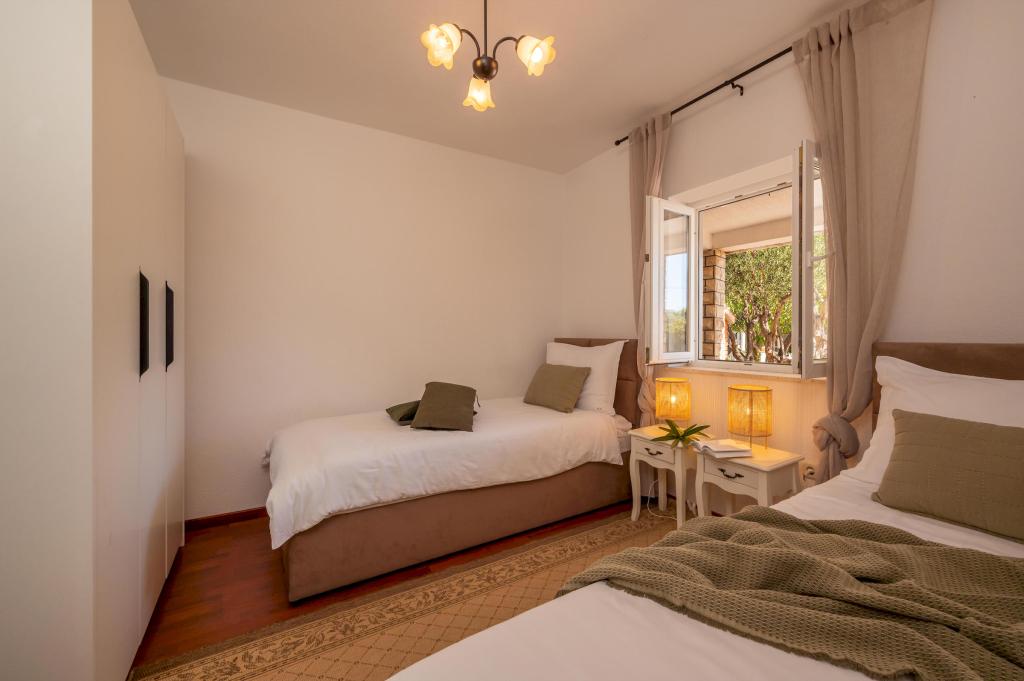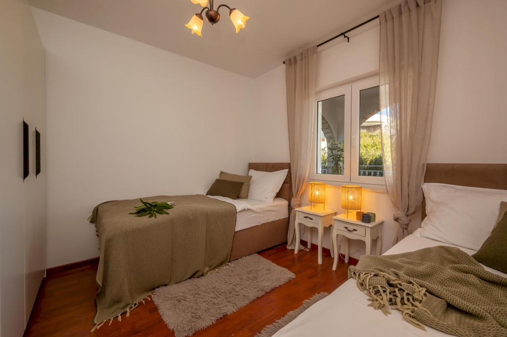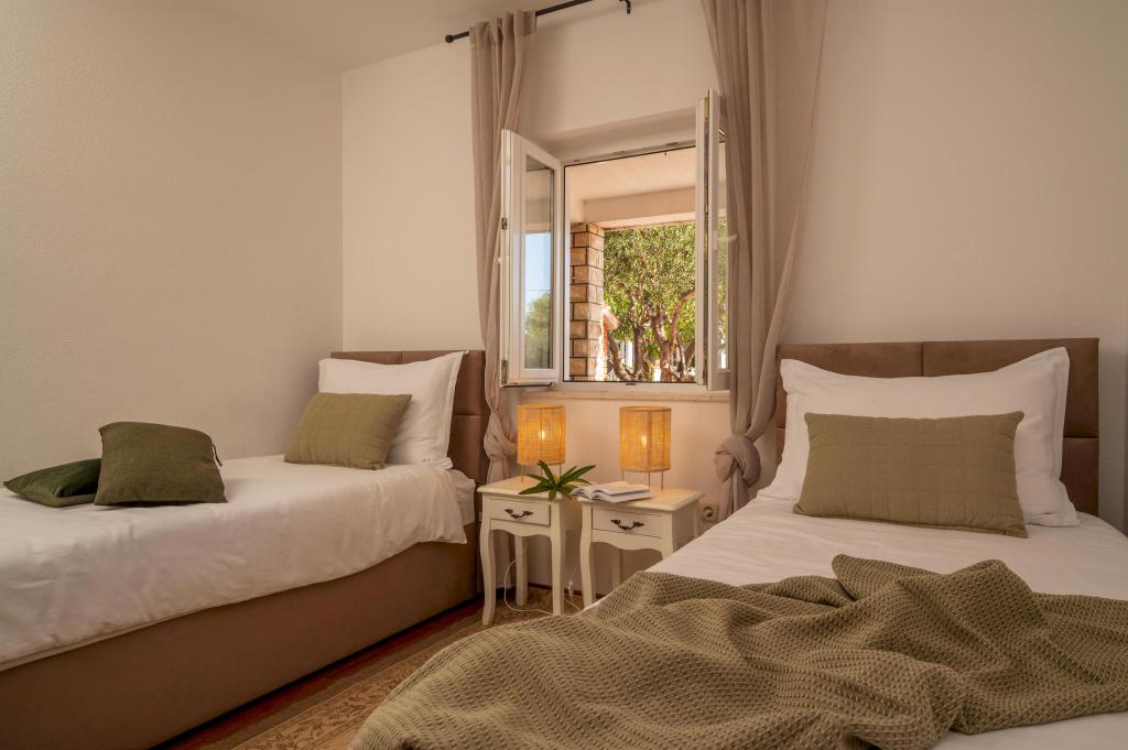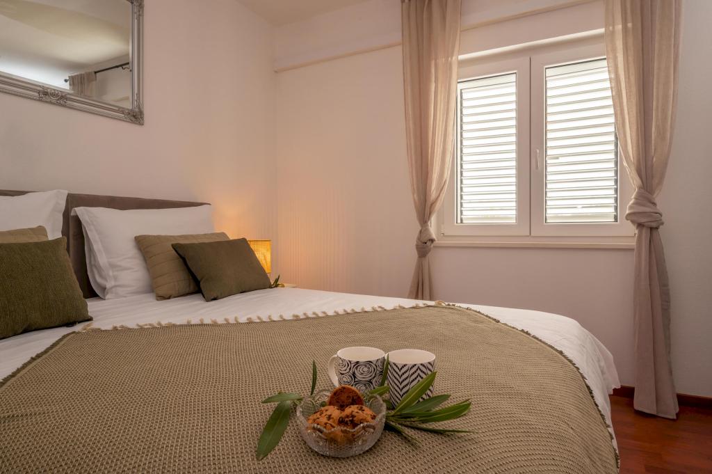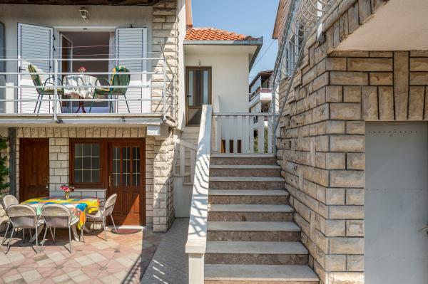Nalazimo se u prekrasnoj uvali Lozica, u neposrednoj blizini mora (30)m, idealno mjesto za obiteljski odmor u opuštenoj atmosferi izvan prometni gužvi. Apartmani se nalaze svega 15 min. hoda od centra u kojem je poznata Marina Frapa, mnogi restorani, kafići, .... Pored Marine Frapa nalazi se prirodni fenomen (slano jezero) Zmajevo oko. Svaki apartman ima terasu, bežični internet, klima uređaj i parkirno mjesto. Nudimo mogućnost korištenja roštilja koji se nalazi u dvorištu kuće. Dobro došli!