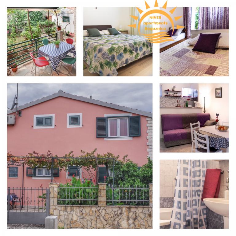 Posljednjih 10 dana lipnja 2021. proveli smo u apartmanu Nives, velikom i udobnom apartmanu za 5 osoba s dvije spavaće sobe, kupaonicom, dnevnim boravkom i kuhinjom. Uz to, vrlo velika, ugodna terasa u hladu biljaka koje rastu u lijepom vrtu. U vrtu se nalazi roštilj s natkrivenom vanjskom kuhinjom i stolom za blagovanje. Apartman je potpuno opremljen, čak i glačalom i miješalicom na raspolaganju gostima. Uzbudljivi, gostoljubivi vlasnici dočekali su nas s rakijom i hladnim pivom. Nekoliko minuta hoda do plaže, kao i do grada. Preporučujemo!