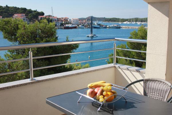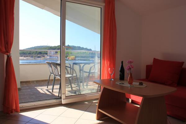 Apartmani su smješteni na odličnoj lokaciji uz samo more u blizini centra mjesta,restorana i trgovina.Okoliš apartmana je lijepo uređen sa osiguranim parkiralištem i roštiljem.Apartmani su lijepo uređeni, svaki apartman ima direktan pogled na more sa balkona.