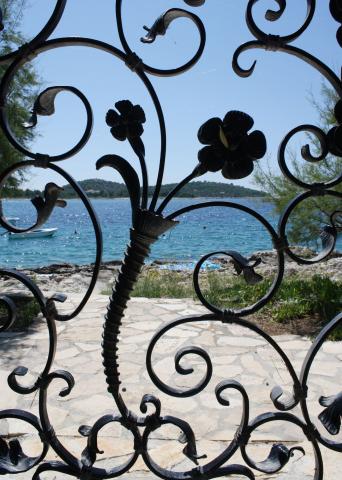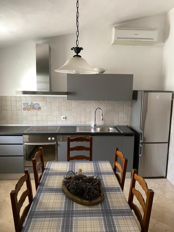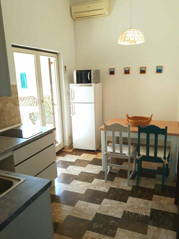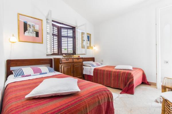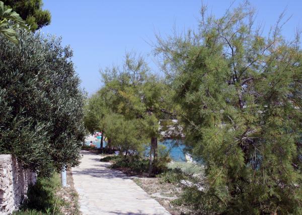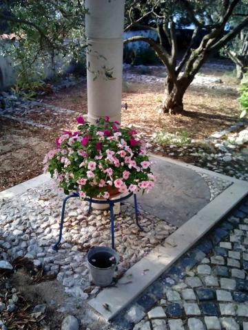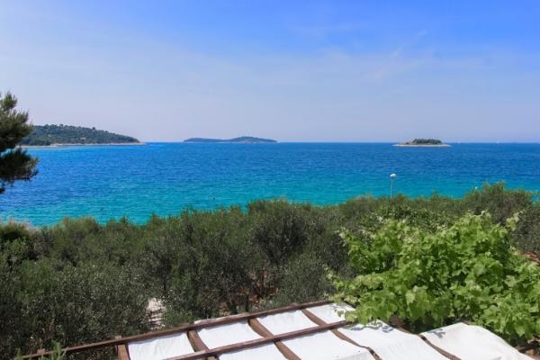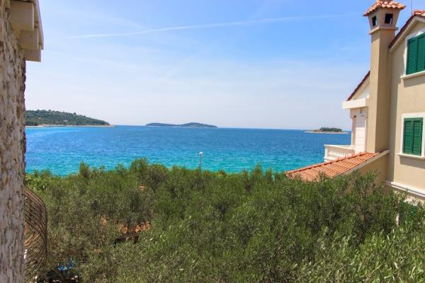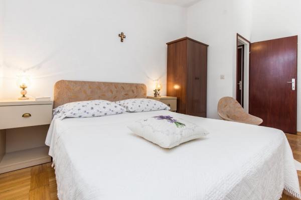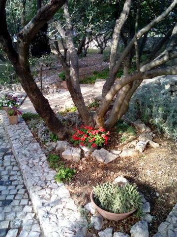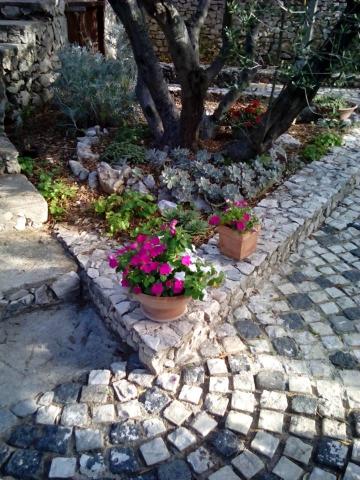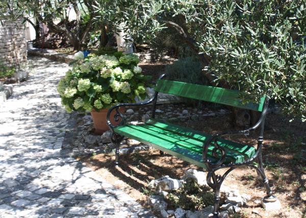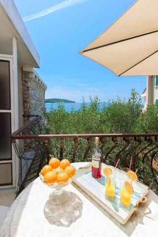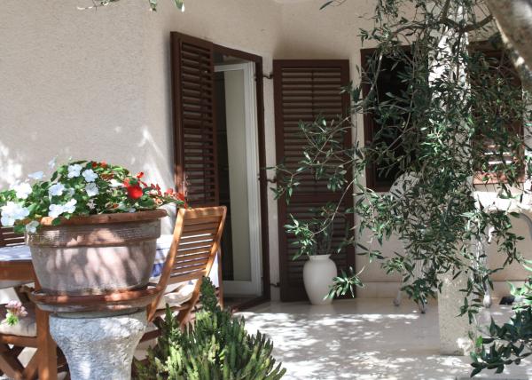 Apartmani se nalaze u kući prvi red do mora na parceli od 800m2. Ispred kuće je tipični dalmatinski vrt ( smokva, masline, lavanda, cvijeće). Sijena maslina daje ugodan hlad za vrijeme velikih vručina. U vrtu se nalazi roštilj, tuš, a kamenom stazom izlazi se na plažu gdje je vez za brod (besplatan).Iza kuće je veliki parking,do centra mjesta laganom šetnjom uz more za 20 min. U blizini kuće nalazi se lijepi bar, gdje pod hladom tamarisa možete uživati u ispijanju prve jutarnje kave ili u sutonu uz čašu pive.... U kući se nalaze tri apartmana i stan vlasnika koji vam u svakom trenutku diskretno stoji na raspolaganju. Služimo se engleskim, francuskim i taljanskim. Apartmani su opremljeni s kvalitetnim namještajem dijelom ručne izrade (zidni ormari), posteljina, ručnici, kuhinjske krpe, suđe, posuđe, mali kućanski aparati su sastavni dio. Na balkonima se nalaze stolovi, stolice, suncobrani, ležaljke. Podovi su obloženi mramorom, a stepenice i balkoni bijelim dalmatinskim kamenom.