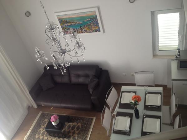 Vrlo lijep, moderan, super opremljen apartman na hladnom mjestu. Jednom riječju, ono što je zapravo na slikama. Mi smo bili dvije obitelji, a mi smo jako zadovoljni. Vlasnici su vrlo gostoljubivi. Plaža s ležaljkama i suncobranima. Idete dolje na moru OK. Početak vrlo dobro prezentirani lako pogoditi. Preporučujem :) Mi sigurno će se vratiti na istom mjestu za nekoliko godina. Vidimo se tamo! Daniel.
