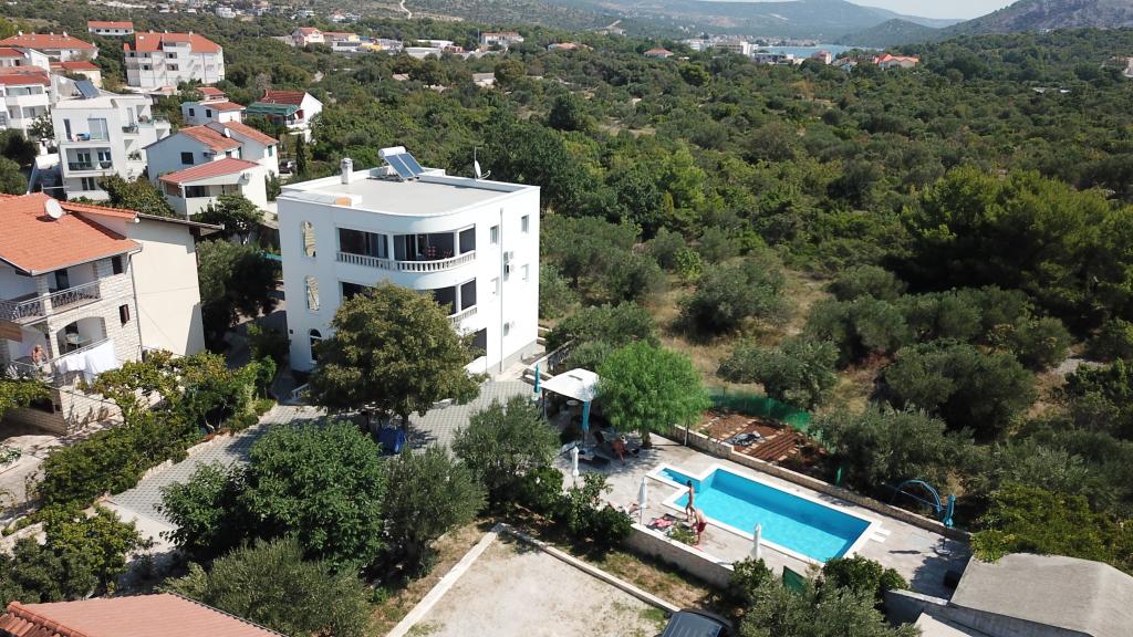 HR. Apartmani Villa Stella nalaze se u Šibenskoj Rogoznici, u vali Lozica, pored prekrasne plaže pogodne za djecu i odrasle. Navigacija AP-Božinko 43°3224. 49N - 15°5740. 88E. Plaža je od bijelog prirodnog žala. Apartmani su smješteni na parceli od 1100 metara četvornih, u prvom redu do mora. Svim gostima osiguran je parking za vozila. Osiguran je gril. Gosti imaju na korištenje nekoliko bicikli. Imaju na korištenje stolni tenis. Svim gostima osiguran je non-stop Internet. Svim gostima osigurana je perilica rublja u posebnoj praonici Gostima koji imaju brod-gumenjak, osiguran je vez (privez) za brod. U samoj blizini nalazi se svjetski poznata Marina Frapa sa svim sadržajima za mlade (bazen, zabava cijelu noć, disko, tenis i ostalo). Pored apartmana nalazi se bazen cc 35m2, Svi apartmani su klimatizirani. U cijenu je uračunata klima, taxsa, upotreba bazen, upotreba bicikli. internet, parking. Apartmani su udaljeni 30m od mora a 800m od centra Rogoznice