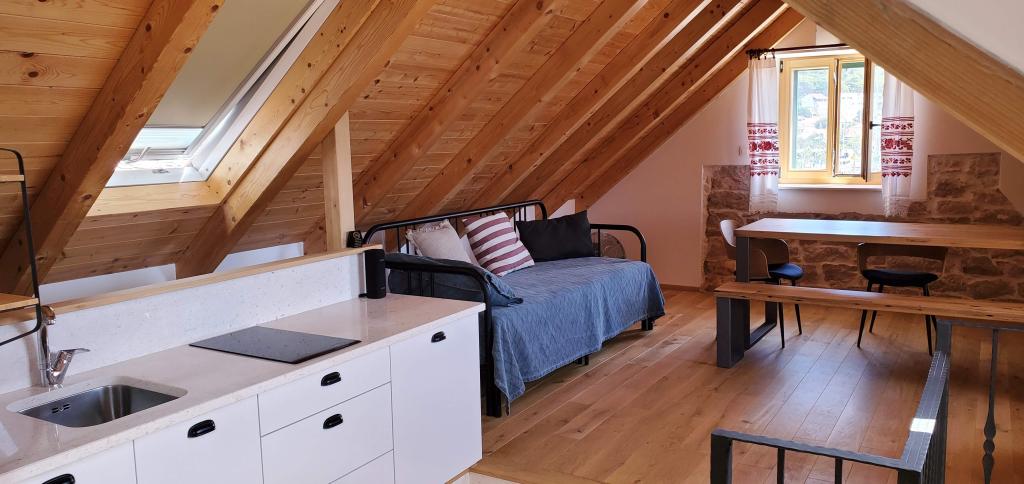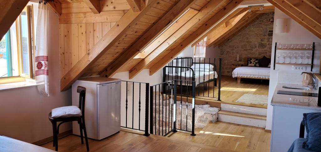 Lastin Dvor je jedna od najstarijih kuca u Rogoznici, po nekim procjenama stara oko 500 godina. Kroz generacije, ona je preobražena od pastirske kolibe, crkvene kuće do sadašnje trokatnice. Smještena u samom povijesnom centru na otoku, okružena restoranima i svim potrebnim uslugama. Kuca ima 4 smještajne jedinice (2 sobe, studio apartman i potkrovni apartman). Rogoznica je popularno malo tradicionalno mjesto u centru Dalmacije sam mnogim atrakcijama u samom mjestu i okolici. Zašto odabrati Rogoznicu i Lastin Dvor za vas sljedeći odmor: - malo i relativno tiho autentično Dalmatinsko mjesto - mnogo atrakcije u samom mjestu i okolici - autentična dalmatinska kamena kuca u samom centru mjesta - prošetajte prekrasnom promenadom do restorana, kafea, trgovina i plaza (šljunak, kamen ili stijene) - kristalno čisto more - tradicionalna dalmatinska gostoljubivost