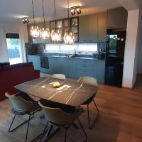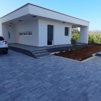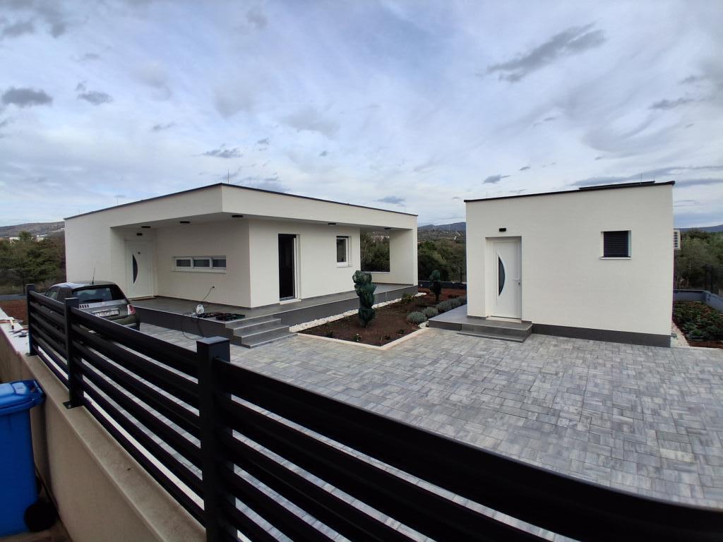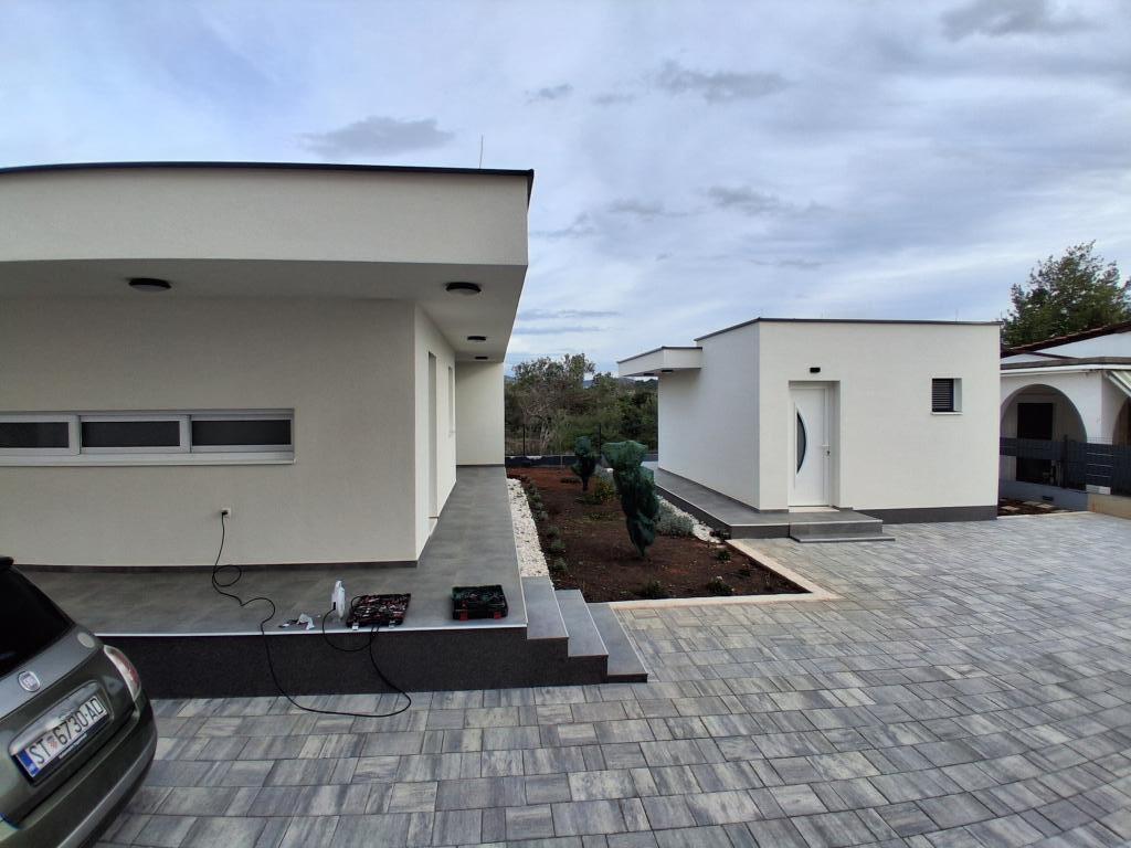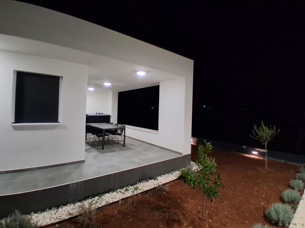 Nova prizemna kuća stambene površine 70 merara kvadratnih sa natkrivenom terasom od 30 metara kvadratnih nalazi se na mirnoj lokaciji udaljenoj od prometnice sa pogledom na maslinik. Prostrana terasa je zaštićena od pogleda susjednih kuća i jamči privatnost. Plaža je na pješačkoj udaljenosti na par minuta od objekta. Privatno parkiralište je ptedviđeno za tri automibila. Ima dvije klimatizirane spavaće sobe ( 1. veliki bračni krevet, 2. dva odvojena kreveta ), prostrani klimatizirani dnevni boravak sa kuhinjom i blagavaonicom, veliko kupatilo sa wc-om. Kuća je opremljena sa svim novim namještajem i uređajima, smart Tv, terasa sa velikim stolom za 6 osoba.