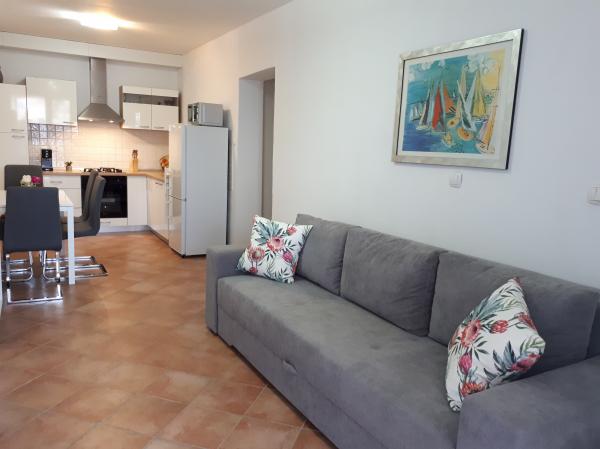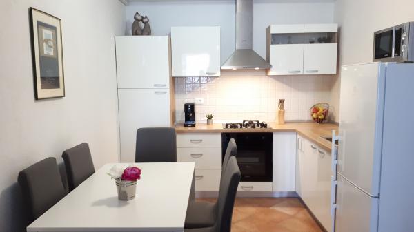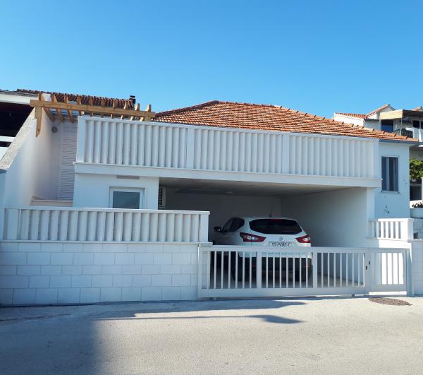 Kuća se nalazi u neposrednoj blizini centra grada prvi red uz more. Sastoji se od kuhinje, dnevnog boravka, kupaonice, tri spavaće sobe od koje je jedna studio apartman u prizemlju kuće sa posebnom kuhinjom, kupaonicom, TV, klima uređajem i perilicom rublja. Osigurana su dva parking mjesta u garaži. Prelijepa terasa osigurava vam pogled na more uz korištenje ležaljki i roštilja. Položaj kuće omogućava obavljanje svakodnevnih aktivnosti bez korištenja automobila blizina dućana, banke, pekarne, tržnice, kafića