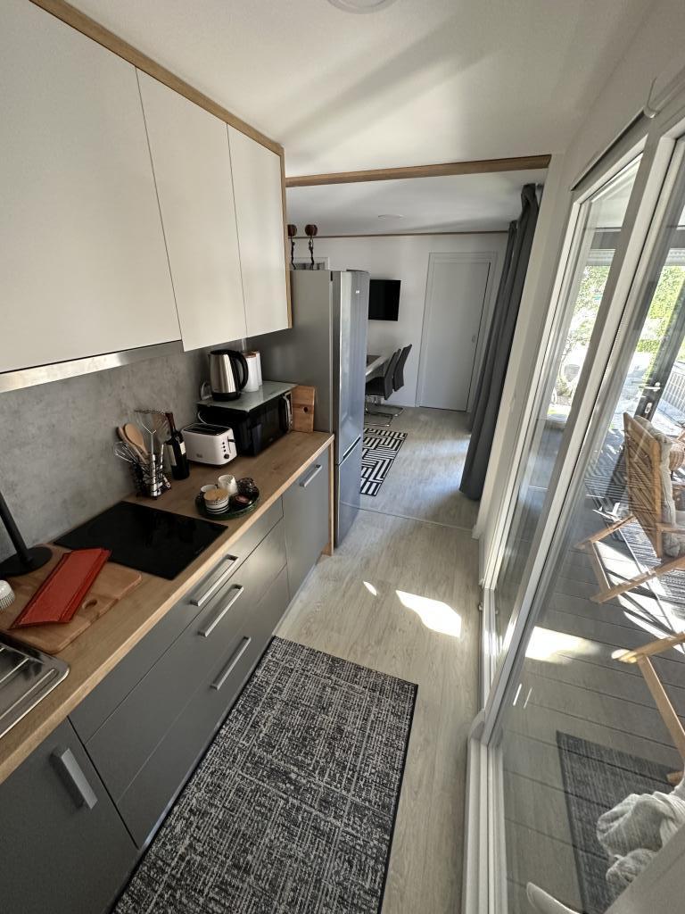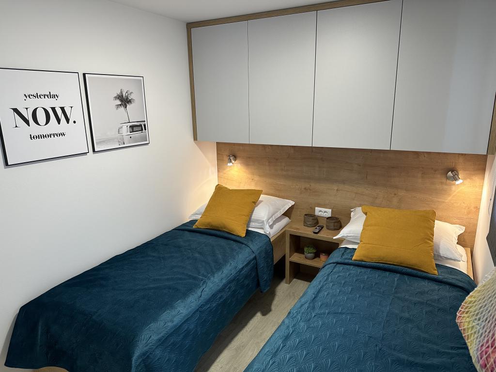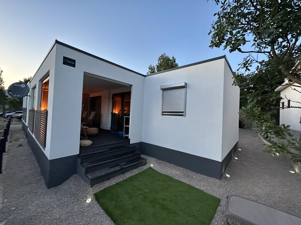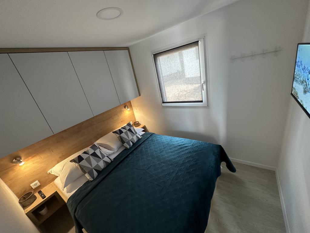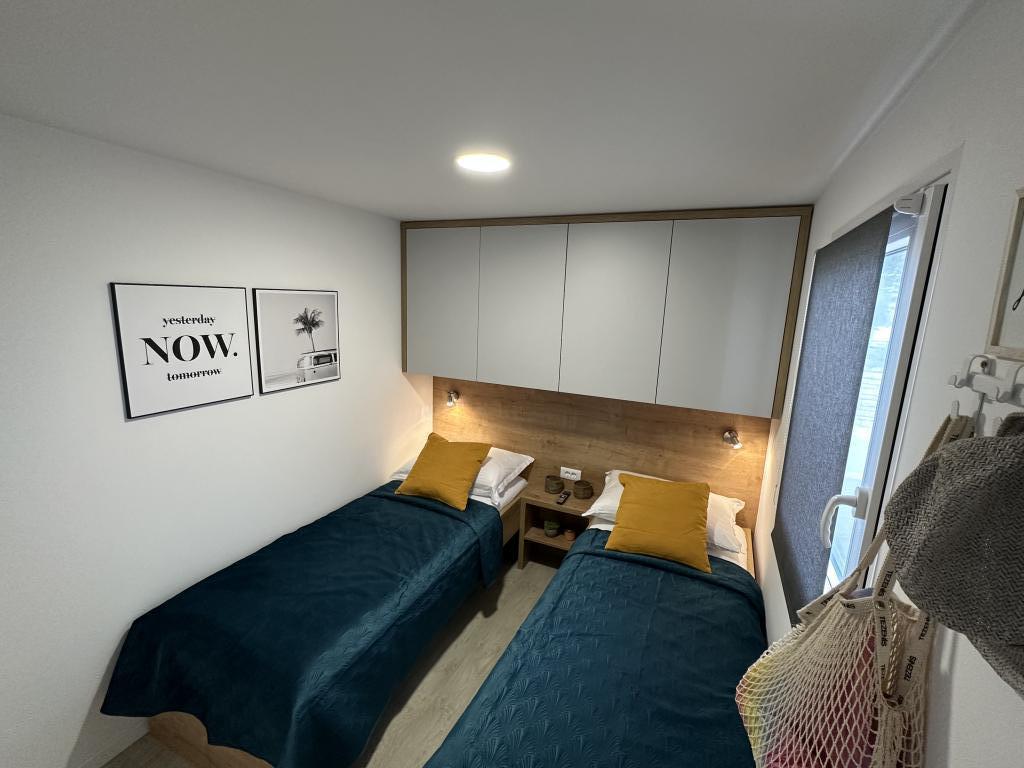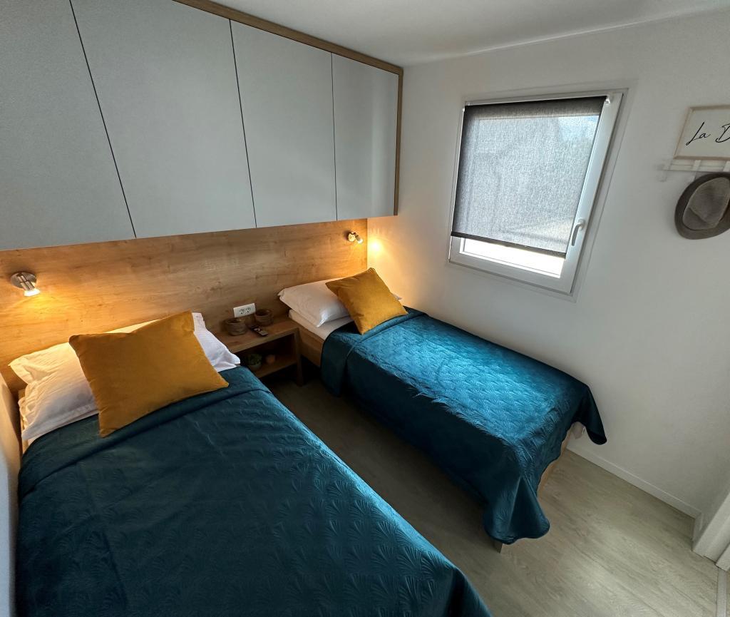 Mobilna kućica Mare blu nalazi se u mjestu Rovanjska, u kampu Tamaris, 70m od mora. Sadrži 34m2 stambenog prostora i 18m2 terase. Ova kućica od 54 m2 ima skandinavski interijer s bojama i materijalima prirode, kako bi ponudila harmoničan i opuštajući boravak. Jedna spavaća soba ima bračni krevet (160 x 200 cm), a u drugoj sobi su dva kreveta (80 x 200 cm). Sve sobe imaju televiziju. Dnevni boravak je kombiniran s kuhinjom i blagovaonicom. Velika kuhinja je otvorena i u potpunosti opremljena za sve vaše potrebe kuhanja – s Krups aparatom za kavu, osnovnim začinima (ulje, maslinovo ulje, sol, papar, ocat), vrhunskim posuđem, aparatima poput tostera i blendera te perilicom posuđa. Naša mobilna kućica opremljena je brojnim modernim uređajima i funkcionalnostima kao što su SAT TV, klima uređaj i bežični internet.