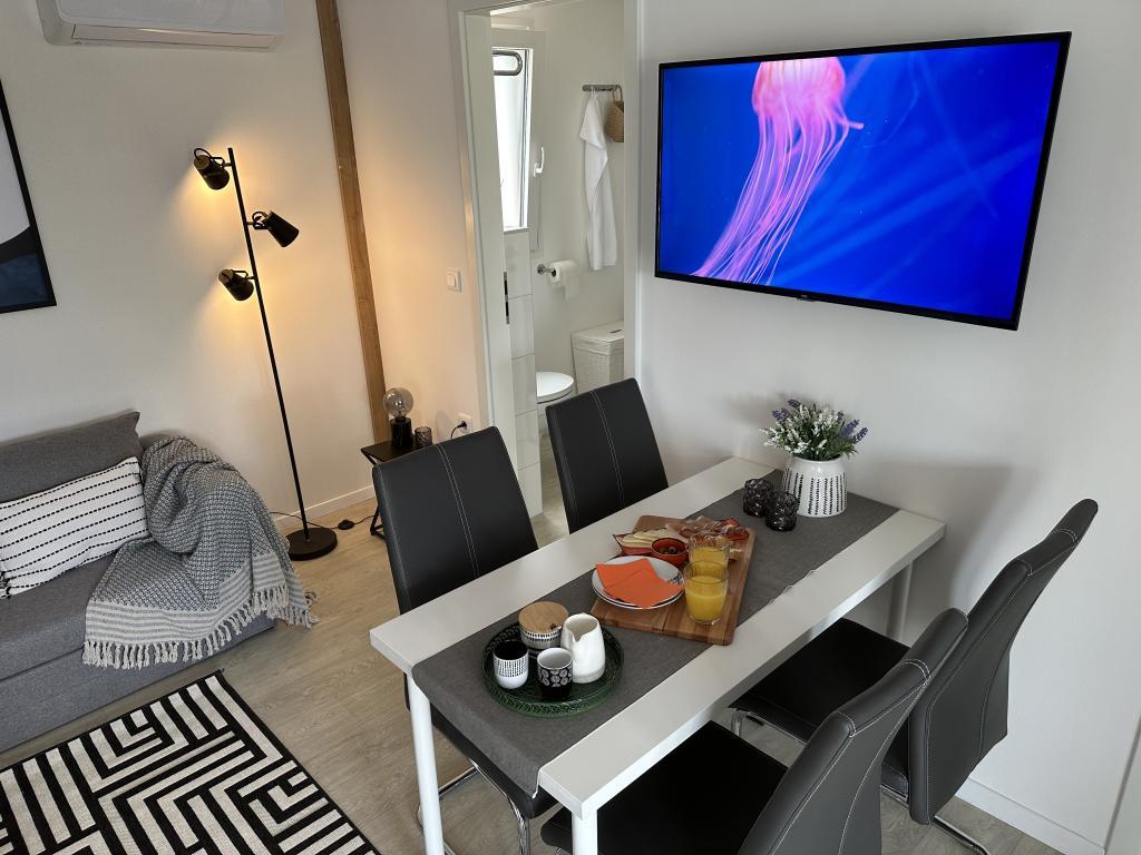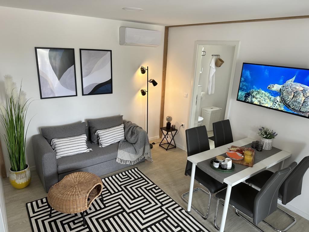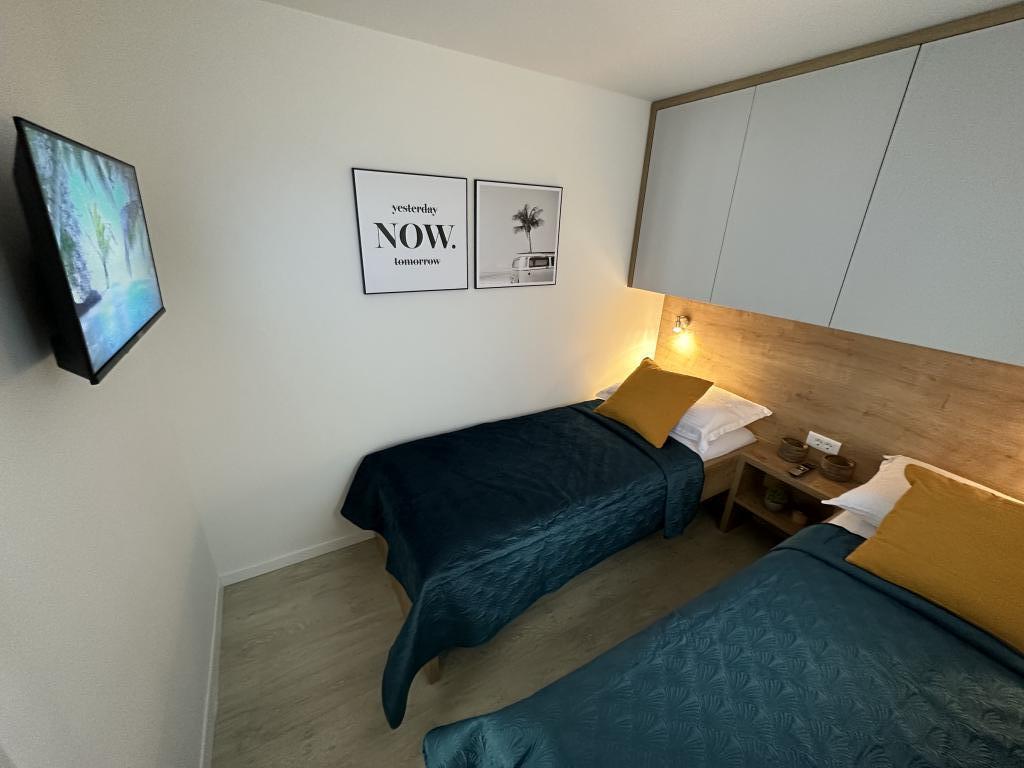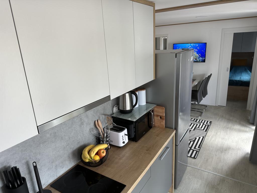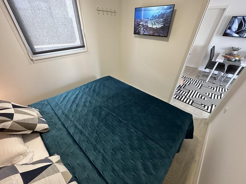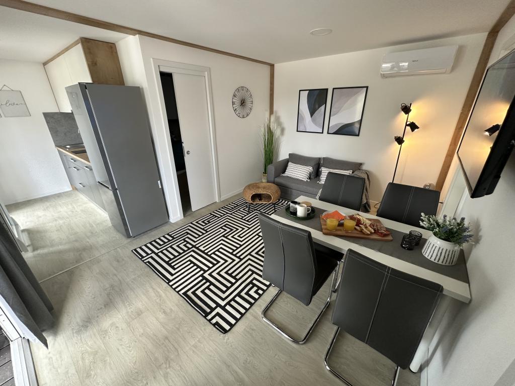 Mobilna kućica Mare blu nalazi se u mjestu Rovanjska, u kampu Tamaris, 70m od mora. Sadrži 34m2 stambenog prostora i 18m2 terase. Ova kućica od 54 m2 ima skandinavski interijer s bojama i materijalima prirode, kako bi ponudila harmoničan i opuštajući boravak. Jedna spavaća soba ima bračni krevet (160 x 200 cm), a u drugoj sobi su dva kreveta (80 x 200 cm). Sve sobe imaju televiziju. Dnevni boravak je kombiniran s kuhinjom i blagovaonicom. Velika kuhinja je otvorena i u potpunosti opremljena za sve vaše potrebe kuhanja – s Krups aparatom za kavu, osnovnim začinima (ulje, maslinovo ulje, sol, papar, ocat), vrhunskim posuđem, aparatima poput tostera i blendera te perilicom posuđa. Naša mobilna kućica opremljena je brojnim modernim uređajima i funkcionalnostima kao što su SAT TV, klima uređaj i bežični internet.