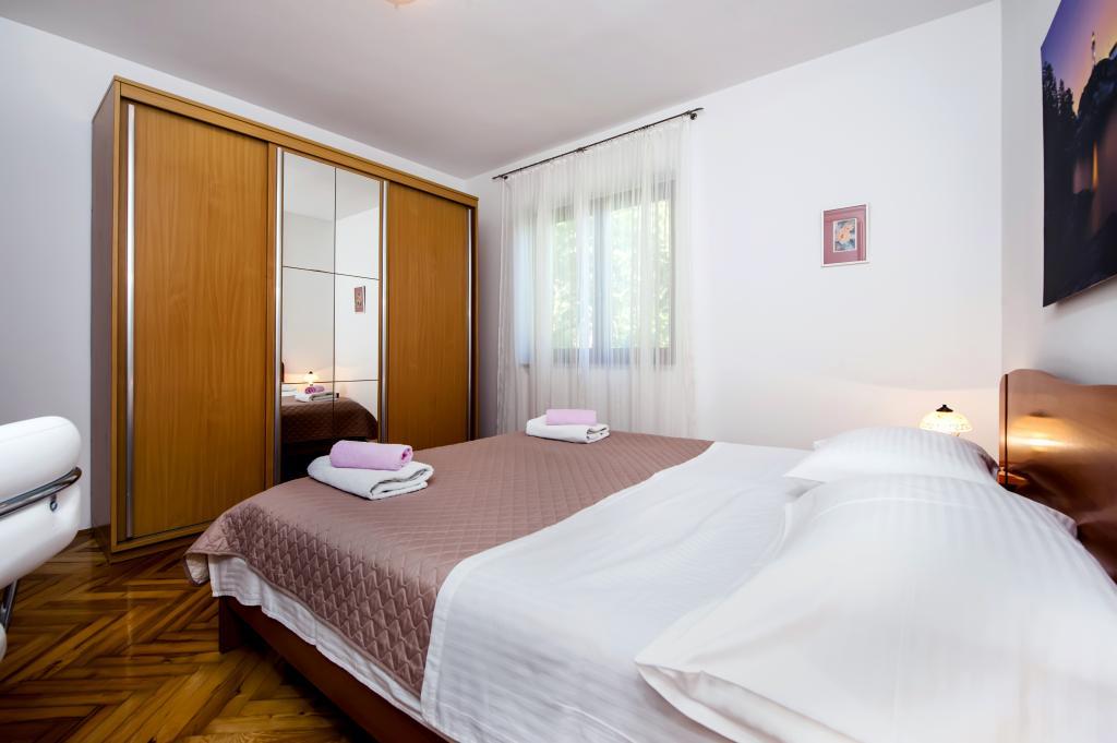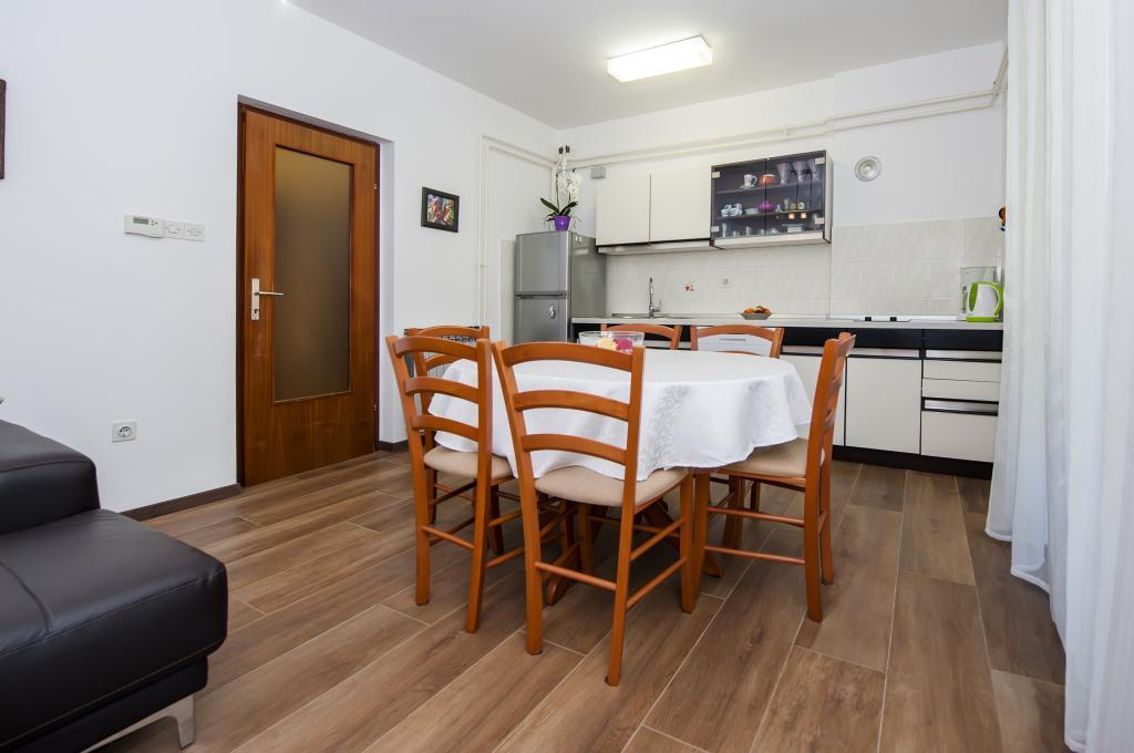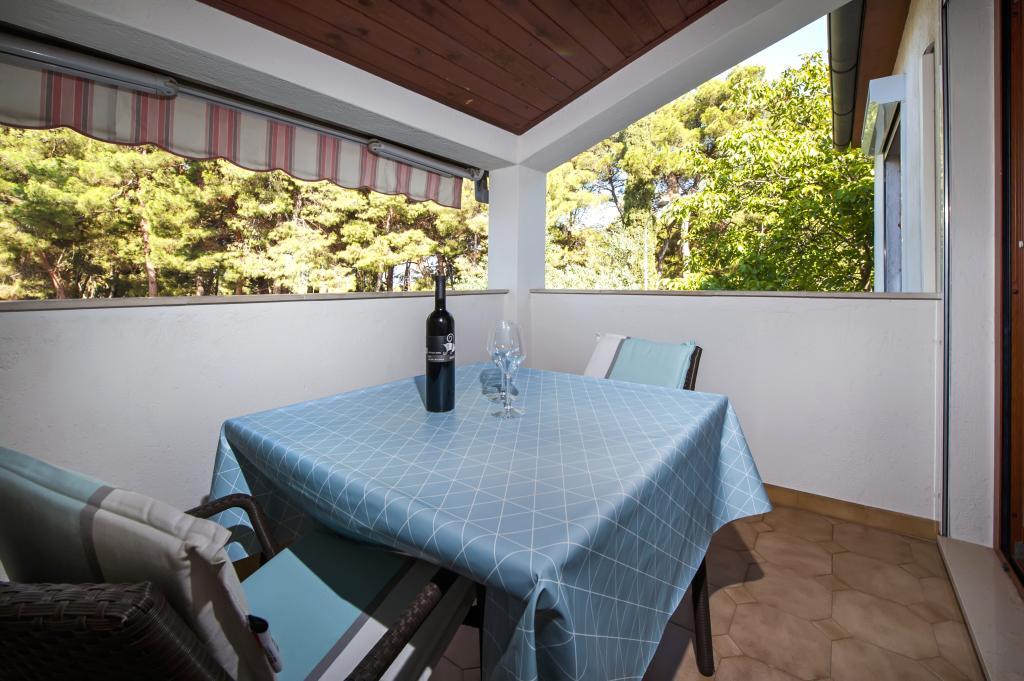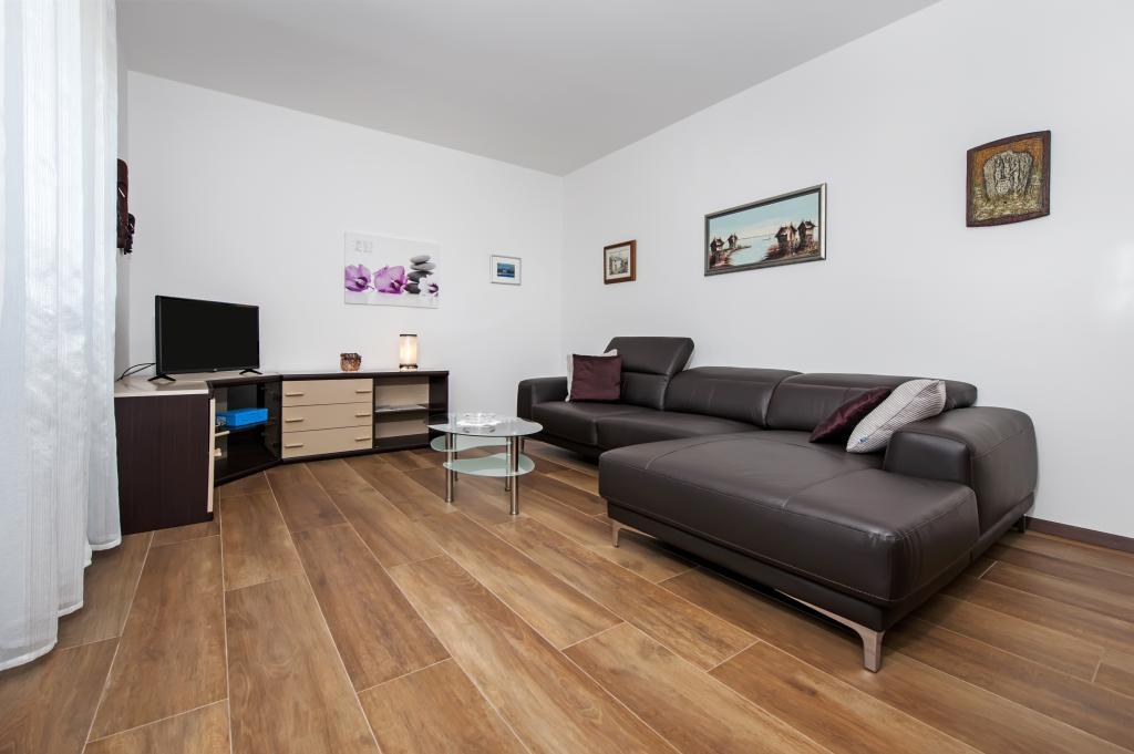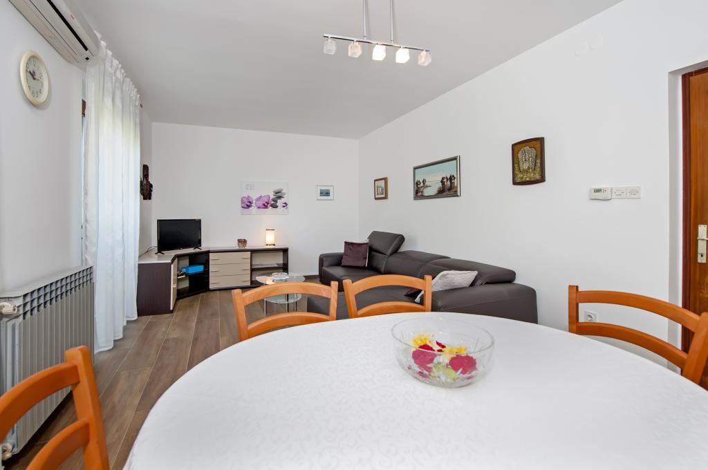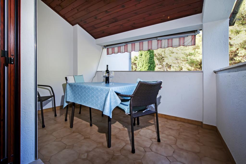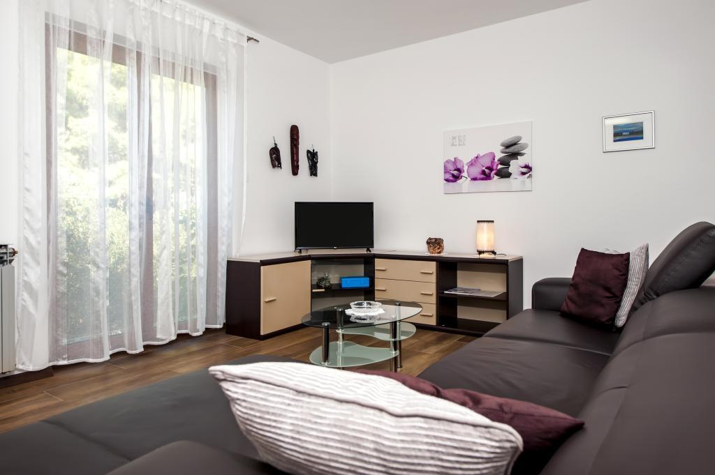 Suvremeno opremljeni apartman za dvije osobe s dnevnim boravkom (TV, Wi-Fi), terasom, kuhinjom (posuđe, perilica posuđa, kuhalo za vodu, hladnjak, toster, aparat za kavu, krpe za suđe), kupaonicom (perilica rublja, fen) i odvojenim WC-om, spavaćom sobom (uključena posteljina i ručnici) te besplatnim parkingom. Nema pomoćnih ležajeva. Kućni ljubimci nisu dozvoljeni.
