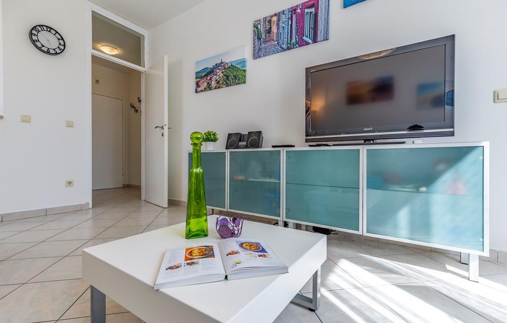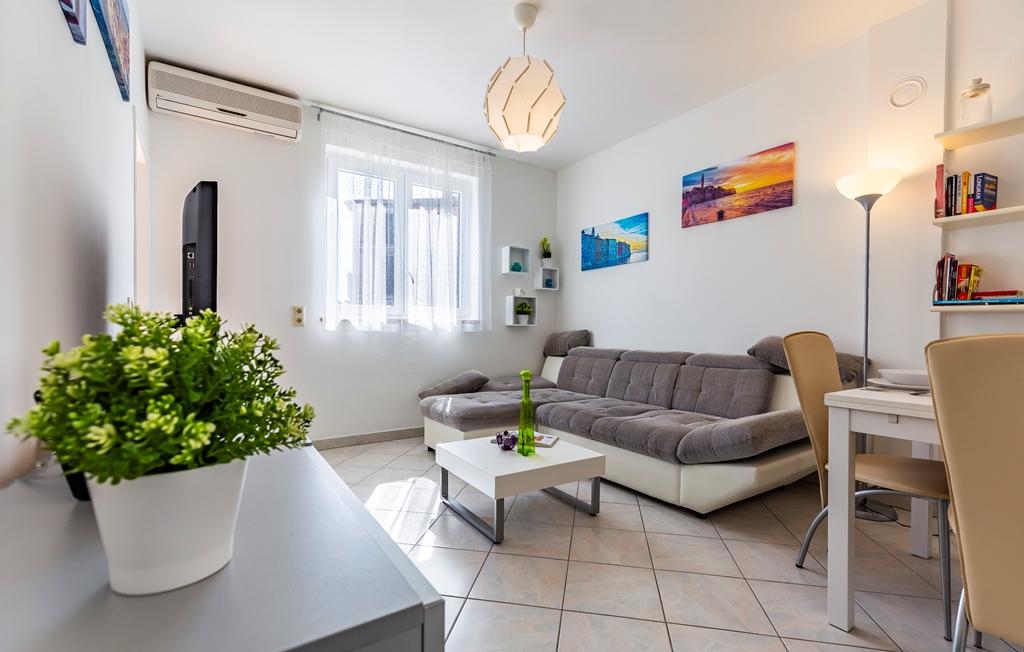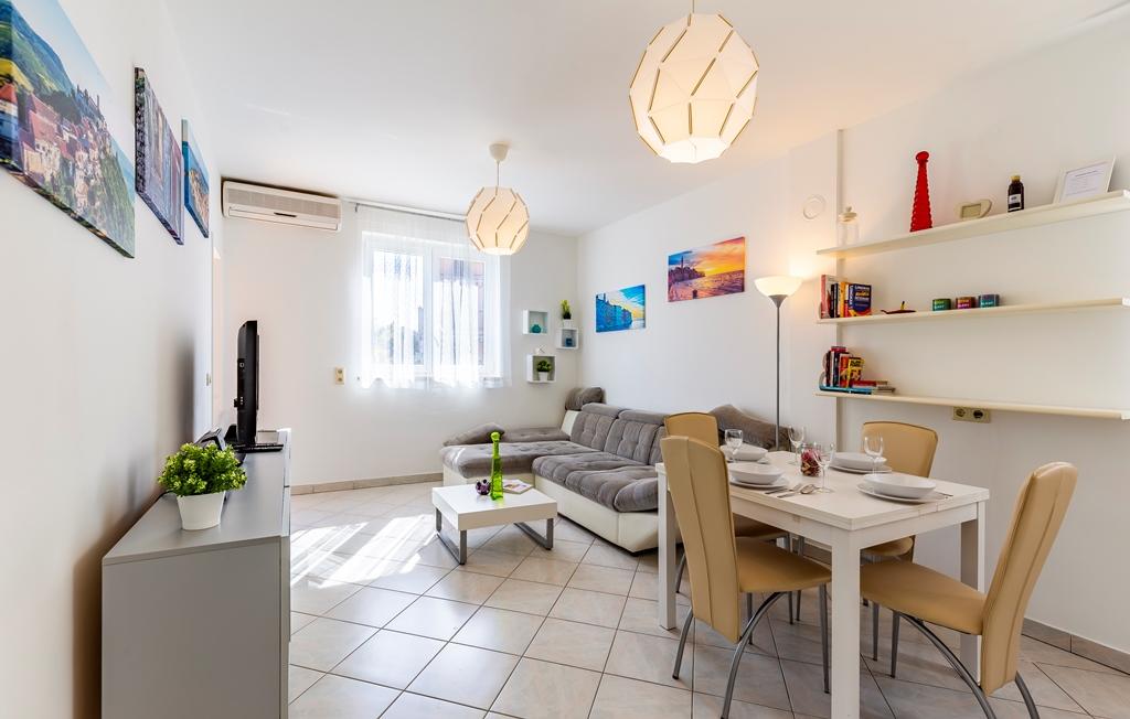 Moderno uređen apartman u mirnom predjelu Rovinja udaljen samo 500 metara od plaže i 1500 metara od centra grada. Apartman ima besplatni internet, klimu, terasu i privatni parking.